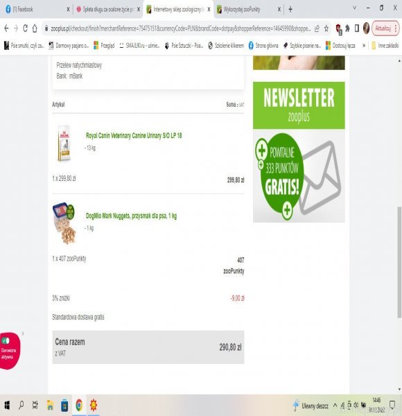 Wpłynęło na konto 30,00 PLN / 02.01. 2023 omi - deklaracja stała dla Stefci - za styczeń, luty, marzec 2023 r. Dziękuję Na koncie Stefci 241,36zł / 04.10.2022 + 30zł / 02.01.2023 _________________ 271,36zł / 04.01.2023 -