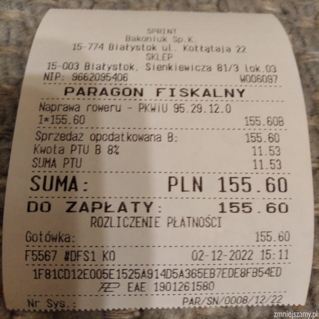"Zimowymi oponkami" cieszyłam się jeden dzień ... Wczoraj śmigała a dziś wpakowałam w wózeczek... podwieszam łapkę i oczom nie wierzę ..., flak Niestety z małymi kołami warsztaty samochodowe nie radzą sobie Jeździłam do Białego do serwisu rowerowego. Dętka przebita. Kupiłam komplet..., Pikunia ma zamontowane w wózeczku nowe oponki. Zapłaciłam 155,60zł / 02.12 (paragon)