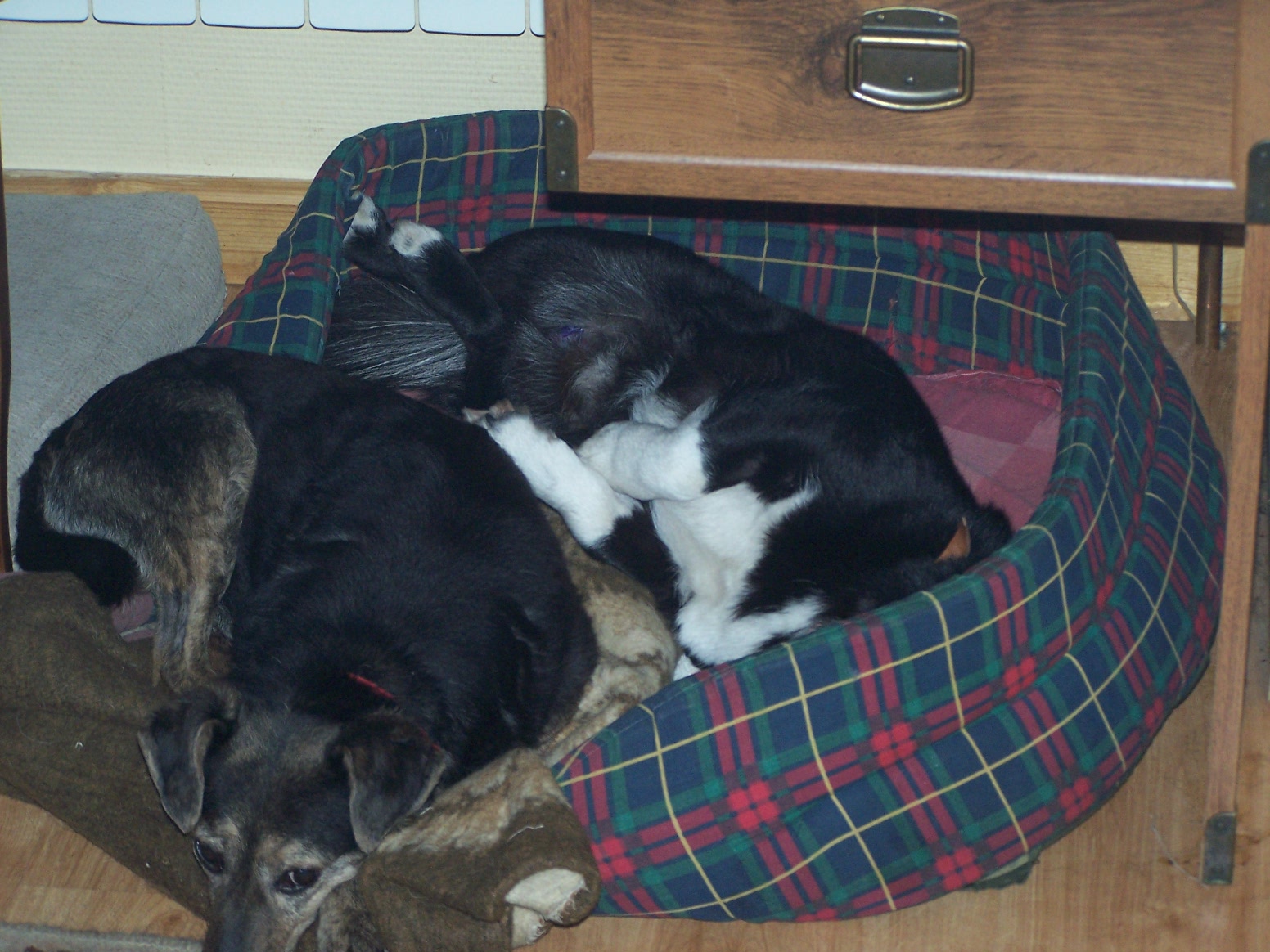 Ptyś, dba żeby Żuczkowi nikt nie zawracał głowy...a w dużym legowisku jest miejsce dla dwóch mikrusów :) W nocy wszystkie maluchy meldują się w sypialni...materacyki porozkładane. Pomieszczenie przestronne...mieścimy się bez problemu ,) Zejście na parter zabezpieczone - nikt nie zejdzie/nie wejdzie. Maluchy mają do dyspozycji 2 duże pokoje :)