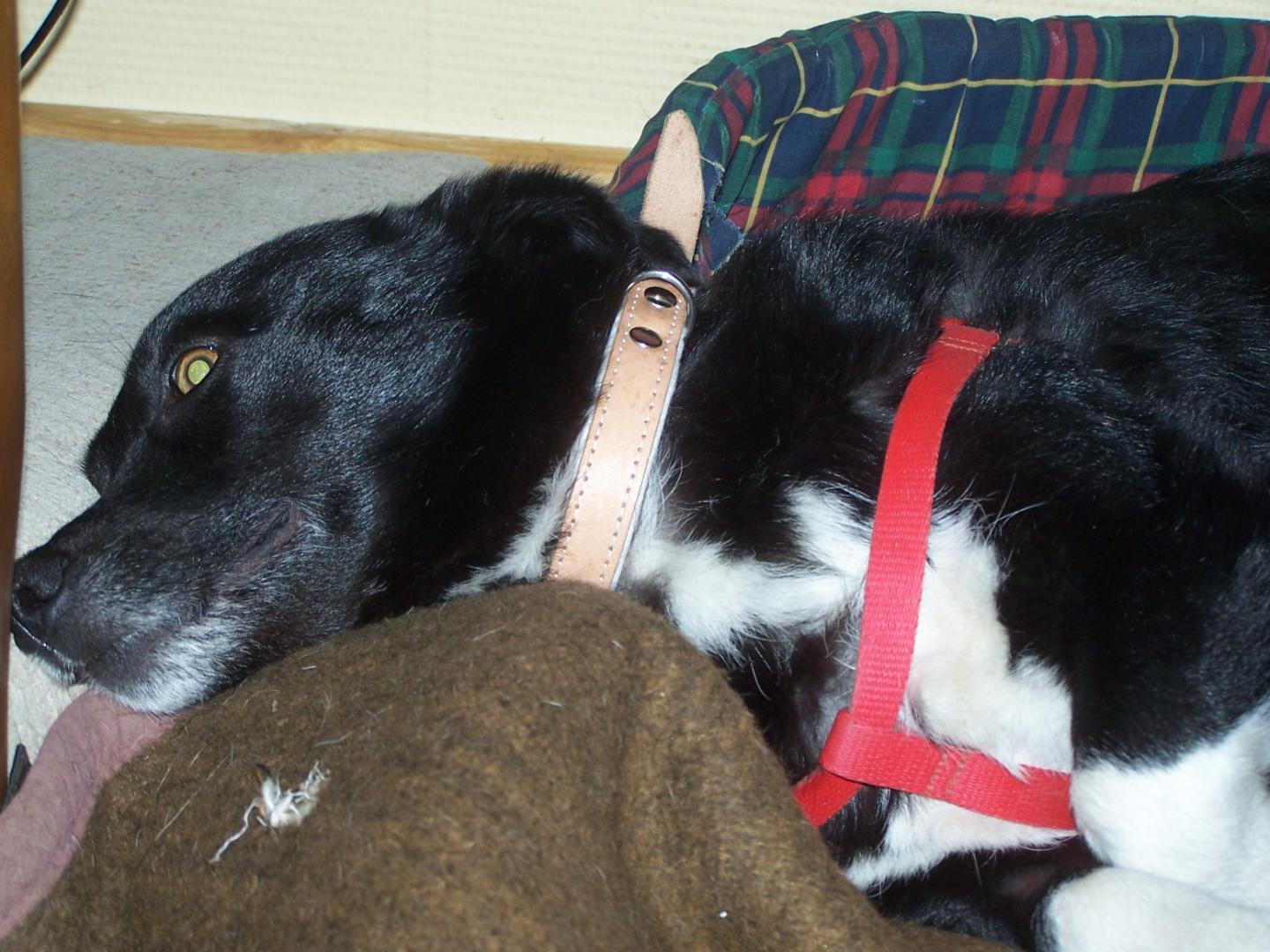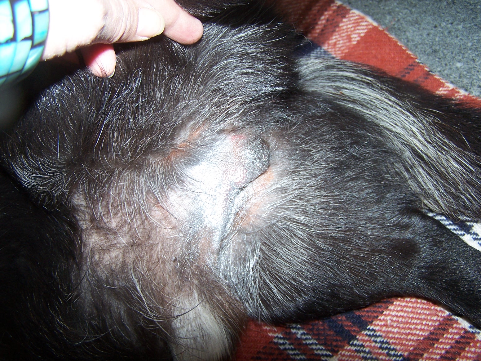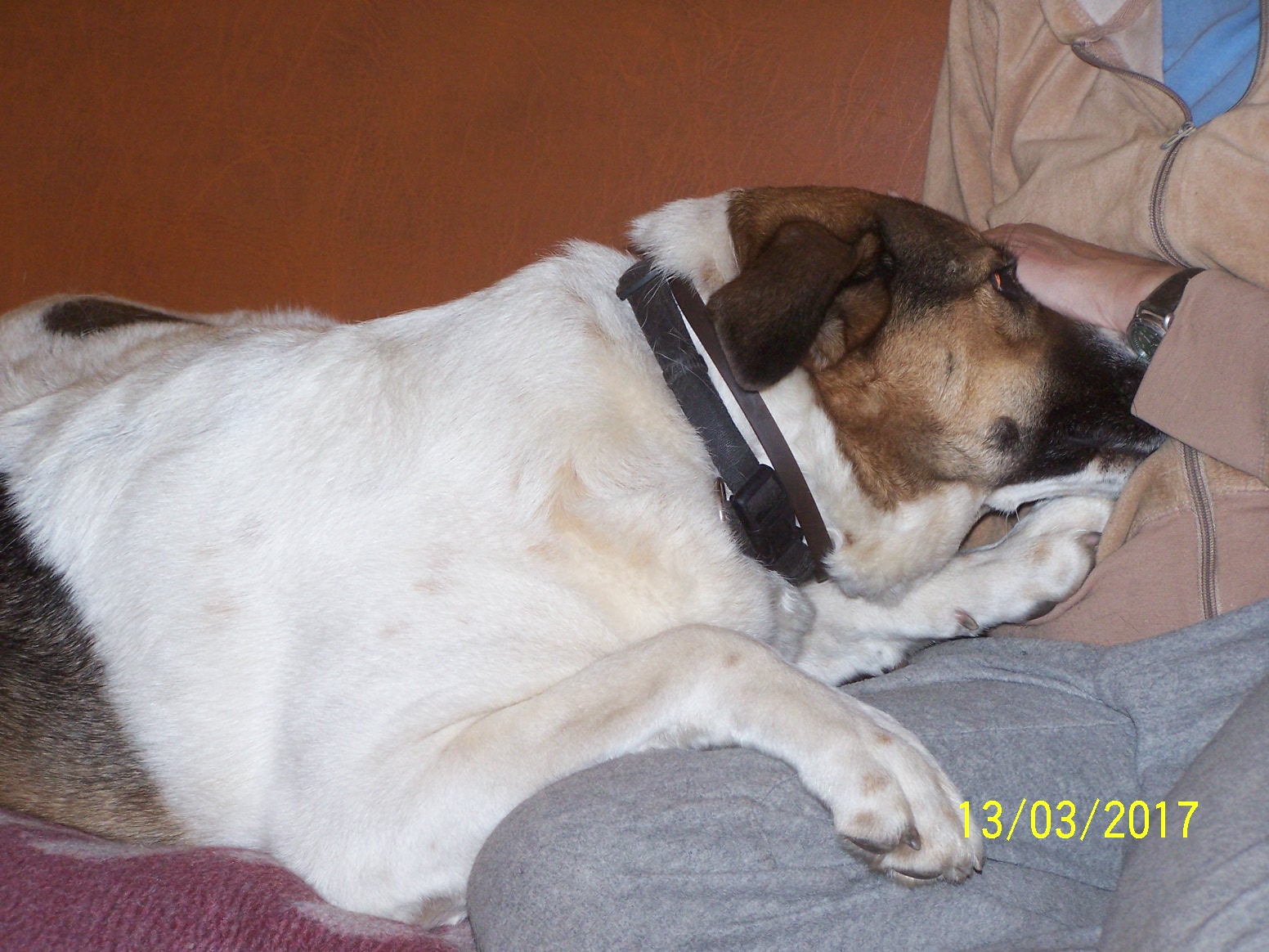 Śliczny urwis :D Przystrzyżony włos odrasta - ładnie widać na ogonku, na dupci. Zarastają łyse miejsca - już są kępki z króciutkim włosem i meszkiem :) Apetyt dopisuje...chętnie wychodzi do ogrodu z psami...spacery coraz dłuższe, nie męczy się - biegnie szybko, już nie idzie wolno kilka kroków za mną.