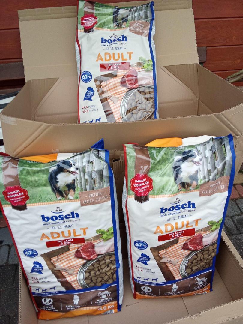 Kupiłyśmy suchą karmę, gryzaki dla stada 4x15kg Bosch , rurki do żucia 300szt / 517,24zł / 30.01.2024 (przelew)
