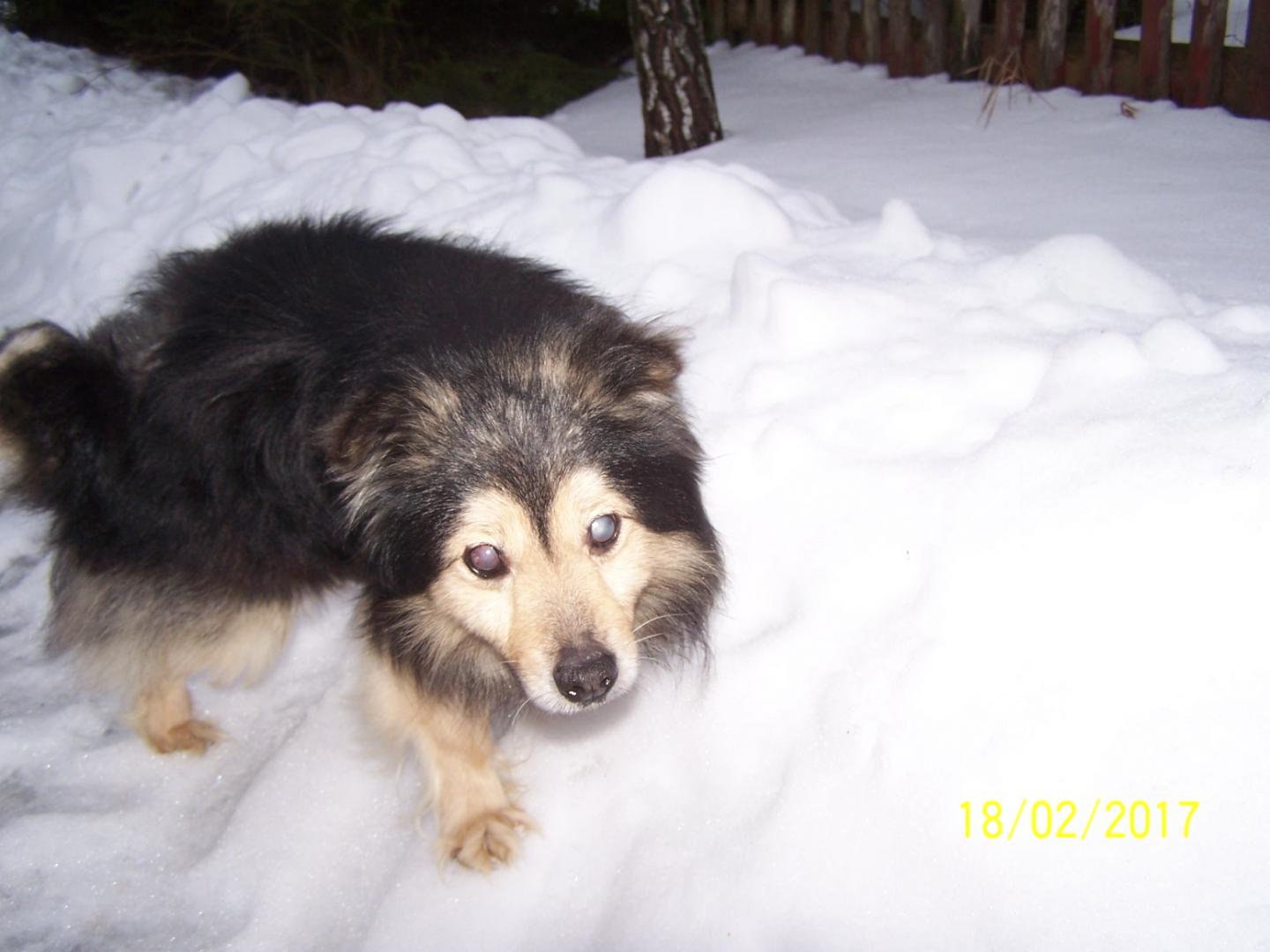 Był pierwszy spacerek... z latarką ;)...siusiu i kupka zrobione... w kale widoczne małe białe robale...nie ma biegunki. Siusia jak panienka :) Widać, że Promyczek czuje się niepewnie na widok człowieka delikatnie macha ogonkiem...zachowuje się jakby nie mógł uwierzyć że jest mu tak dobrze. Kręcił się, widać było że chce się załatwić ale z domu nie chciał wyjść...wyjechał na rękach, za to w drugą stronę pędzusiał szybciutko, nie miał problemów w znalezieniu drogi :)