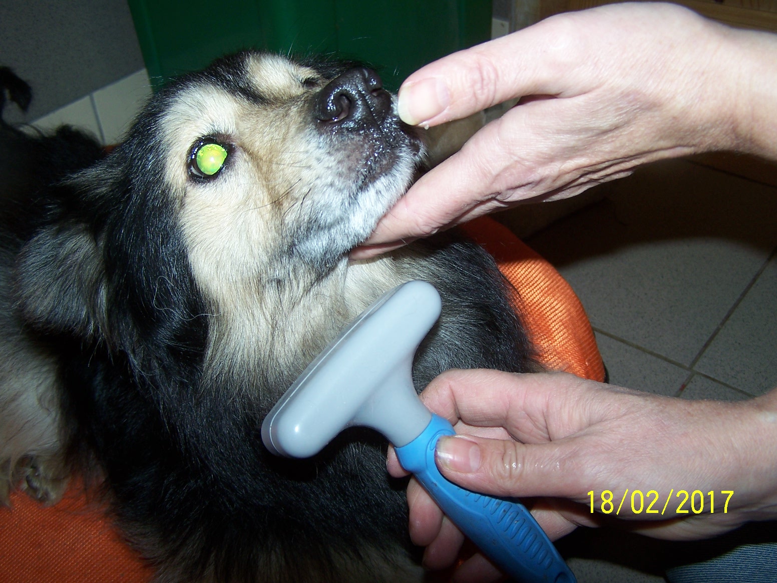Noc przespana...najbezpieczniej w legowisku ;) Rano krótki spacerek - 2 x siusiu i 1 x kupka. W kale nie widać robali...barwa czekoladowa o dziwnym zapachu. We wtorek wezmę kał do badania. Żywszy :)... chyba trochę odpoczął, świąd nie dokucza przestał się drapać. Na razie nie zauważyłam żeby tarł, przecierał łapeczką oczko. Dziś, obejrzymy dokładniej maluszka