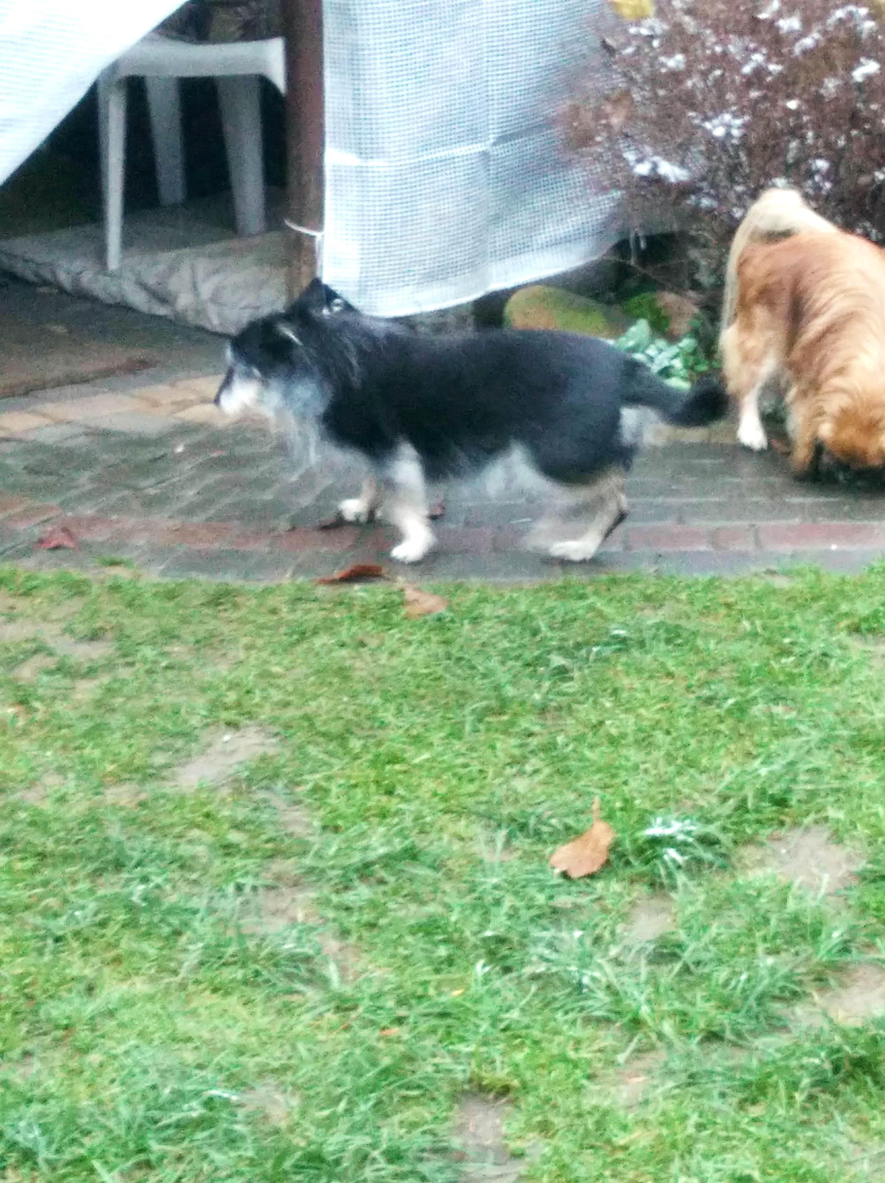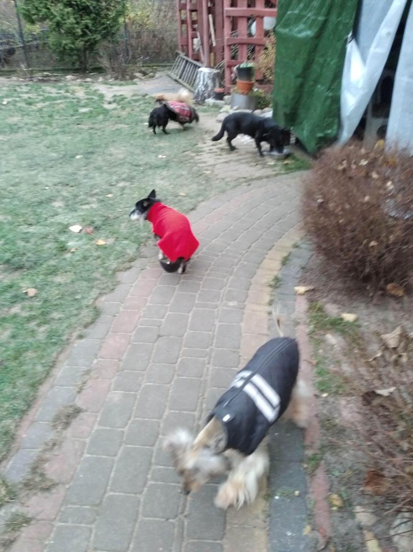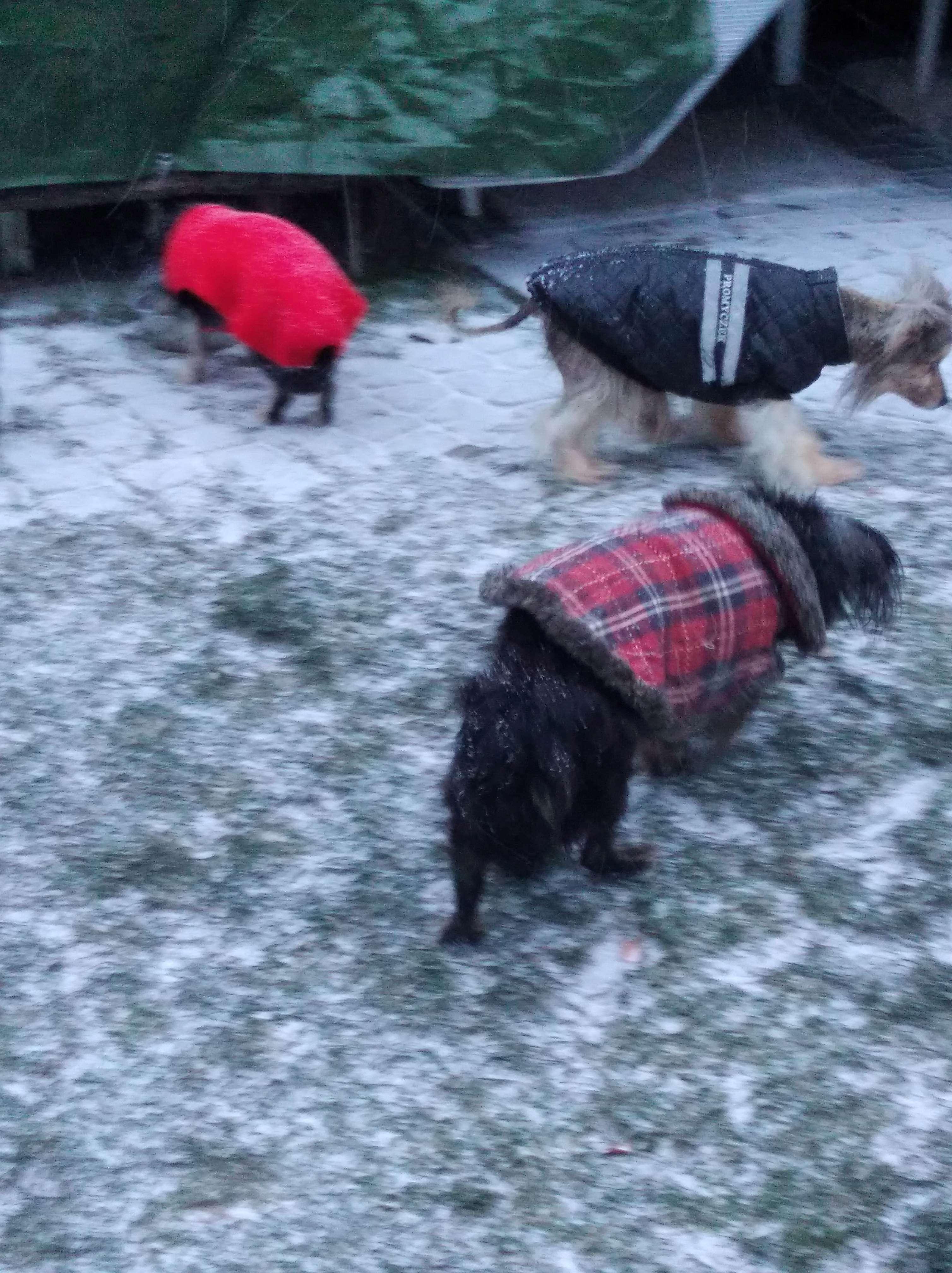 Zaczyna się. Godzina 5 minus 8 stopni...psy błyskawicznie siusiały w ogrodzie i pędziły do domu. O 7 nadal minus osiem..., dziaduniom / śleputkom mróz nie straszny Agunia - pilnowałam żeby nie zwiała do domu przed siusianiem
