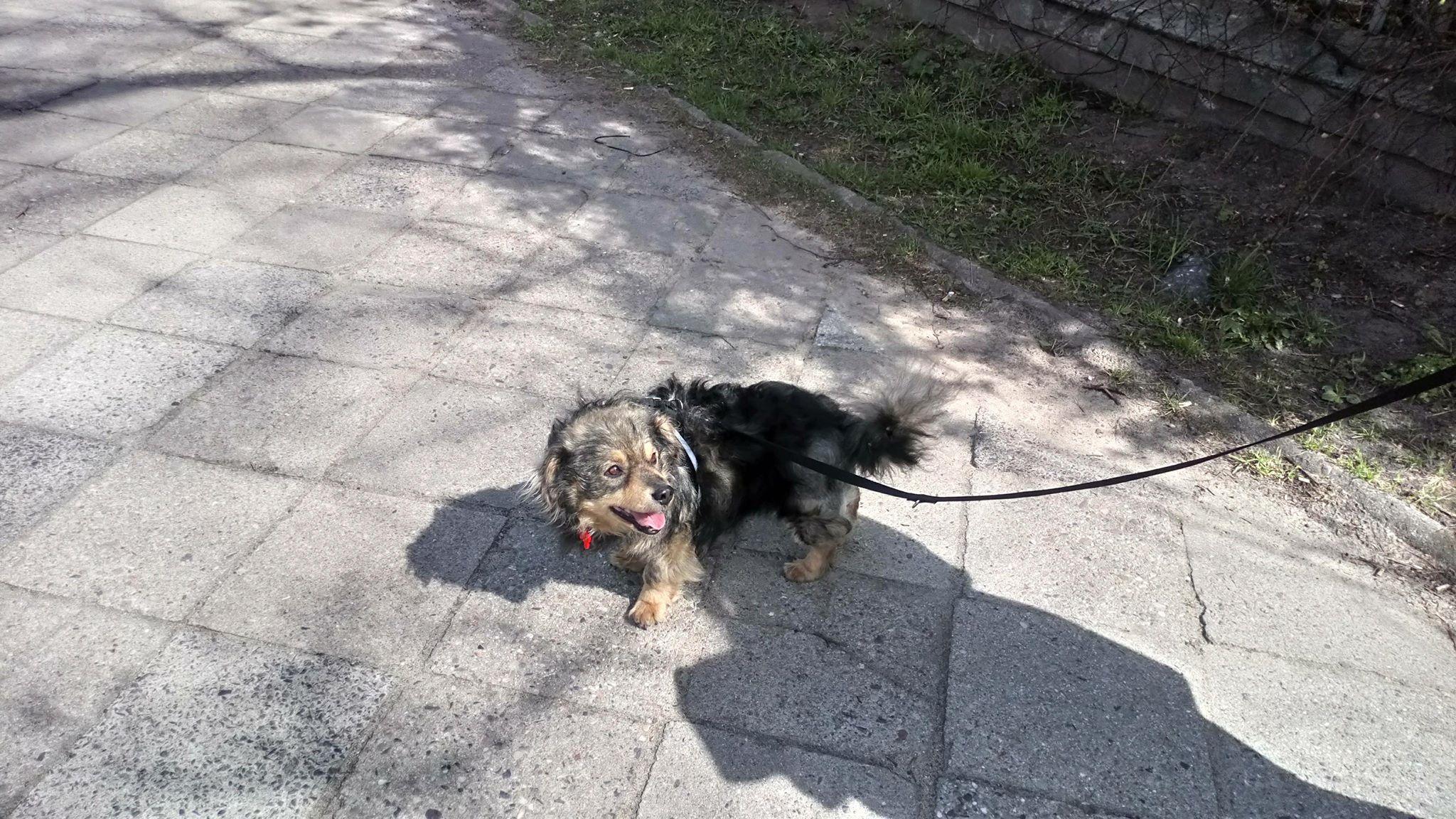 Dotarłam do domu i ja więc zabieram się do opisania relacji :D Udało nam się w końcu spotkać - niestety mając do dyspozycji tylko dwa weekendy w miesiącu a marzec był ciężki bo po drodze święta nie miałam możliwości odwiedzenia Tobiego wcześniej. Umówiłam się z Moyogi przy Teatrze Powszechnym. Jak stałam na światłach widziałam jak wysiedli z tramwaju i spokojnie przemierzyli skrzyżowanie i światła. Na spokojnie podeszłam i przywitałam się z Dorotą nie zagadując nawet do pieska aby przyzwyczaił się do głosu i żeby go od razu nie przytłoczyć swoją osobą :-) Początkowo Tobi szedł troszkę niepewnie, był bardzo czujny i obserwował otoczenie uważnie. Bardzo ładnie chodzi na smyczy a wcześniej nie potrafił tego wcale. Był moment że zamieniłam się z Dorotą i ja go prowadziłam - dopóki Tobi tego nie zauważył szedł koło mojej nogi ale jak się skapnął po jakimś czasie pilnował już nogi Doroty. Maszeruje sobie powoli, ładnie znaczy teren jak na pieska przystało, jest mega mega grzeczny. Bardzo pilnuje się Doroty, początkowo jak usiadłyśmy na kocyku i Dorota chciała zrobić mi z nim zdjęcie od razu poderwał się jak tylko się oddaliła. Po kilku minutach położył się jednak koło mnie i pozwolił Dorci oddalić się i zrobić nam zdjęcie i nagrać nawet filmiki. Parówki działają cuda! to prawdziwy parówkożerca :) ale bardzo delikatnie bierze je z ręki, nie jakoś łapczywie jak niektóre pieski potrafią. Rzeczywiście oglądając wcześniej zdjęcia miałam wrażenie że Tobi przytył ale to złudzenie - ma mega puchate futro - tak naprawdę to drobniutkie ciałeczko jest. Nóżka powoli porasta, czasem lekko przykuleje sobie na tą nóżkę ale nie sprawia wrażenia aby go bolało czy sprawiało to dyskomfort. Teren był czasem pagórkowaty więc miał darmową rehabilitację :) Okolica piękna, ciepełko, woda i sporo spacerowiczów też tych z psami. Tobi wyraźnie ożywia się na widok pieska ale nie ciągnie, nie wyrywa do niego, nie szczeka i nie zaczepia. Ogonek merda :-)Mimo tego że jest spokojny to cały czas na " czuwaniu " - jakiś nowy lub nagły dźwięk czasem potrafi go jeszcze troszkę wystraszyć. Ogólnie to ideał psa, taki mój wymarzony wzorzec - wygląda pięknie i bardzo się uśmiecha co widać na zdjęciach - ma taki pozytywny wyraz psiej twarzy :-) Ogromna robota została zrobiona przez Dorotę i Mariusza oraz Samantę - to oni uczestniczą w jego życiu codziennym, wymieniają się dyżurowymi spacerami w czym ja nie mogę im pomóc:( Przeorganizowali cały swój wolny czas aby móc uczestniczyć w socjalizacji Tobiego za co jestem im ogromnie wdzięczna bo wiem ile mają dodatkowych obowiązków i zobowiązań. Kawał dobrej roboty!!! Bardzo Wam dziękuję ! :* Takiego DT właśnie szukaliśmy - takiego w którym Tobi będzie się uczył życia normalnego psa. To nie jest pies na łańcuch czy podwórko ( żaden pies nie jest ) ale Tobi naprawdę jest wyjątkowy i po wielu ( ? ) latach tułaczki zasługuje na coś więcej, na normalne życie prawdziwego Króla bo niewątpliwie nim jest :) Wrażenia mega pozytywne - ktoś komu skradnie serce będzie miał wiele pociechy ze wspólnego życia z tym psim Aniołkiem. -
