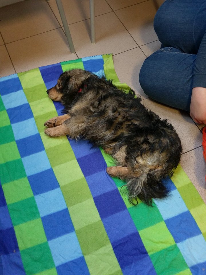 Kochani mamy dobre wieści, nawet bardzo dobre! Okazało się że tego pęknięcia kręgosłupa nie trzeba operować, doktor Bissenik obejrzał malucha, zrobił rtg ale zdjęcia wyszły bardzo kiepsko ponieważ kończynę miedniczną podwijał Tobi pod siebie - pewnie mu tak wygodniej było i mniej bolalo. Doktor znieczulił naszego chłopca i zrobiliśmy RTG w znieczuleniu - okazało się że ta miednica jest w bardzo kiepskim stanie a operacja powinna być wykonana do 3 dni po urazie a my dokładnie nie wiemy kiedy uraz nastąpił i napewno minęło sporo czasu od zdarzenia. Doktor powiedział że kość jest tak roztrzaskana i zgruchotana ( jest tam gruz ) że nie podejmie się w chwili obecnej operacji bo mógłby wyrządzić więcej szkody niż pożytku. Odłamki nie są na tyle duże aby mieć pewność że usunie się wszystkie. Aby zachować ruchomość stawu ( bo już w miednicy zaczęły się zrosty kości ) - jedyna możliwość to poczekać 4 tyg aż samo się troszkę podgoi i wykonamy zabieg resekcji główki kości udowej. Pozatym kręgosłupem mamy się nie przejmować bo zdarzyło się to w części bezrdzeniowej - Doktor powiedział że stan Tobiego nie jest zły - że będzie normalnie chodził po tej operacji. Narazie mamy zalecenie 4 tyg bezwzględnego klatkowania w kennelu tak aby ruch był ograniczony + dostaliśmy lek przeciwbólowy na 10 dni. Mamy się zgłosić za 4 tyg i umówić termin zabiegu. Korzystając z okazji że Tobi był w znieczuleniu poprosiłyśmy z Dorotą o podgolenie mu troszkę tyłka z sierści aby łatwiej było zachować higienę. On ma strasznie dużo kołtunów, zmechaconej sierści - jak wydobrzeje napewno trzeba będzie go podciąć aby piękna nowa sierść odrosła - ale to już w przyszłości :) Mamy też spory problem ponieważ miejsce w którym Tobi teraz przebywa - jest tymczasowe. Nie może tam długo zostać i tu pojawia się pytanie i zarazem prośba czy ktoś znalazłby kawałek kąta w domu aby Tobiego do i po operacji " przetrzymać " w klatce kennelowej ? Zapewniamy oczywiście karmę i usługi weterynaryjne - szukamy ciepłego, sprawdzonego miejsca. On jest totalnie bezproblemowy jeśli chodzi o " obsługę " - grzeczny, spokojny i cichutki jakby go nie było. Cudny pies, w gabinecie dał ze sobą zrobić wszystko, dosłownie wszystko... Prosimy pomyślcie, popytajcie...może ktoś się zgodzi zaopiekować Tobim I teraz ta mniej przyjemna rzecz - finanse... Za konsultację zapłaciłyśmy dzisiaj 237 zł Szacowany koszt operacji to 900-1000zł Za chwilkę wkleję zdjęcia i filmiki jakie nagrywała Dorota :) Bardzo bardzo bardzo jej dziękuję za dziś :******* i za obecność i wsparcie bo byłyśmy mega zestresowane -