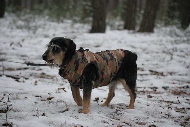 Alfred wreszcie doczekał się kubraczka żeby mu cieplej było Nie rozstaje się z nim. Chyba, że na noc jak śpi w pomieszczeniu. -