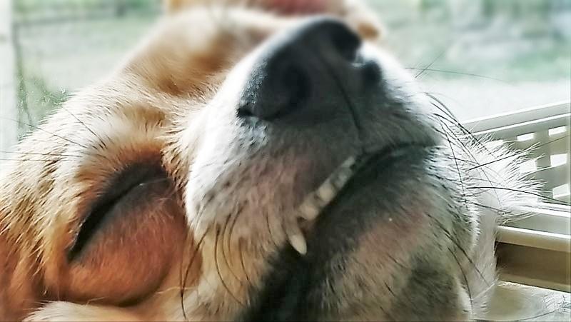 Jesteśmy już w domciu, Mimiśka oczywiście nie zjadła ani pół smaczka, ani kropelki wody nie wypiła, wszystko wmłóciła jak już wjechałyśmy z powrotem na podwórko i zaciągnęła się swojskim powietrzem;). Po dłuższej nieobecności, kiedy wrócimy do domu i odepnę smycz, Mimi biega po domu i warczy, niech mi mądrzejsi powiedzą o co kaman. Zjadła napiła się i padła, stres odpuścił. Biedny rudzielec, po przejażdżce złachany jak Łysek z pokładu Idy ;)