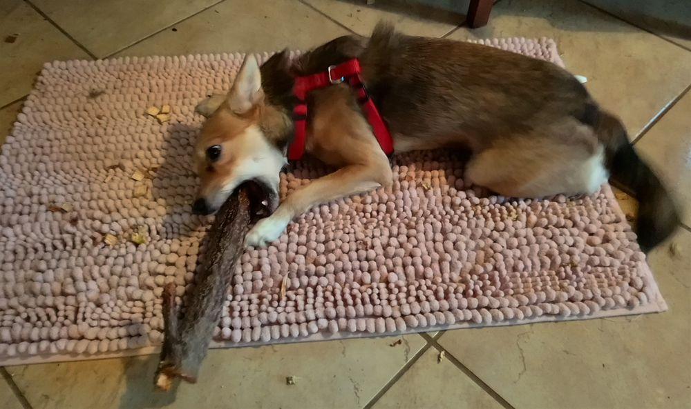 Kochani, ostatnie dni pielgrzymowałam po lekarzach. Niestety jesień znowu przynosi zaostrzenia schorzeń, moich wiernych przyjaciół ;) Choć do Mikołaja jeszcze sporo czasu to Mimisia dostała prezent, to co kocha najbardziej, papuniuniu :) Mimi kocha jeść, gdyby jej nie pilnować to wyglądałaby jak kasztanowy ludzik, cztery zapałki i kasztan w środku. Ona i Jeżynka mają miski spowalniające, a i tak kończą szybciej niż Psotka z Yoshim. Mimisia wtedy dostaje "kociej mordki" że inni jeszcze mają coś w miskach, tak być nie może, próbuje się dopychać na siłę do ich misek, oczywiście nie pozwalam na to i Mimi jest nieszczęśliwa. Natomiast do jej miski nikt nie może podejść na odległość metra bo zamienia się w czupakabrę, tylko ja mogę mieszać jej palcem w misce. Mimi dziękuje za pyszną przesyłkę. A tak odchodząc od pieskiego tematu, ciekawe jak Tysi idzie pisanie pracy. Ja choć miałam szczere chęci przeczytania pracy magisterskiej mojego dziecka, to poza dłuuuugi i skomplikowany tytuł nie przebrnęłam ;))) Miłego dnia wszystkim i choć pochmurno to życzę w duszy.