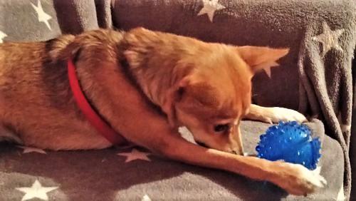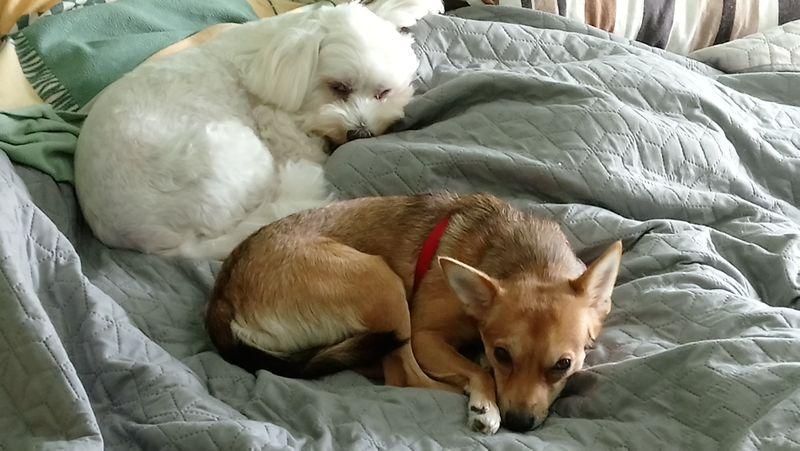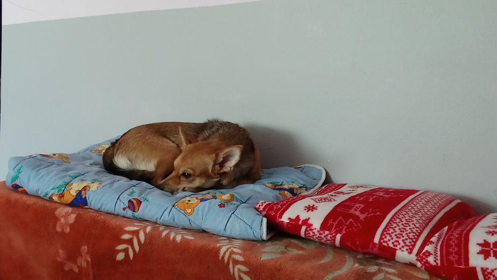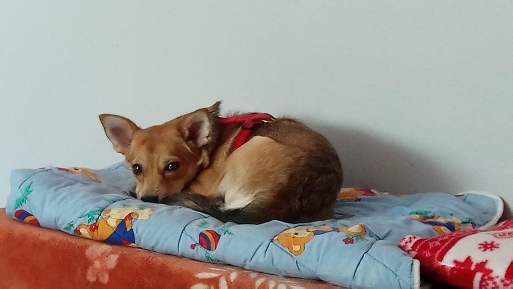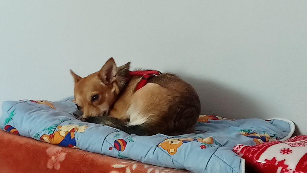 Witajcie niedzielnie Niestety sterylka spłynęła po Mimisi jak woda po kaczce, w zachowaniu zero zmian, rywalizacja z Psotką trwa w najlepsze, ale największy problem że nadal potrafią po sobie kropić, nie sikać tylko znaczyć, obie wysterylizowane. Nie na okrągło, tylko jak im odbije, dzisiaj obie dostały opiernicz bo piłkę znaczyły na zmianę. Potrafią też spać razem na jednym fotelu! One są jak dwie wredne siostry. Stały domek bez suczki, bo szybciej wróci jak bumerang. Nie da się jednak wredziastej nie lubić, jest rozbrajająca. Strach nadal wisi jej na ogonie i ciągle ją goni. Zawału przed chwilą prawie dostała, bo Połówek wybierał się na rower i założył na głowę bejsbolówkę, no straszne to było, Coś z wielkim dziobem z przodu! Chciało ją zjeść. Mimi szaleństwo ma we krwi i jest roztrzepana jak jajko na omlet, lubi bardzo biegać po domu i wskakiwać na mnie na fotel, wczoraj przez pomyłeczkę se wskoczyła, ale na fotelu zamiast mnie siedział hehehe Połówek , widzieliście kiedyś start rakiety? Domowym towarzystwem Mimi są koty, z nimi wojuje, oprócz Bianki, Bianka ściga Mimiśkę, może uda mi się kiedyś skręcić filmik. Może uda mi się pstryknąć dzisiaj jakieś fotki to wieczorem wrzucę, a na razie takie, odpoczynek po wariacjach, łóżko rano było ładnie zasłane, ale Mimi z Yoshim posłali po swojemu.
