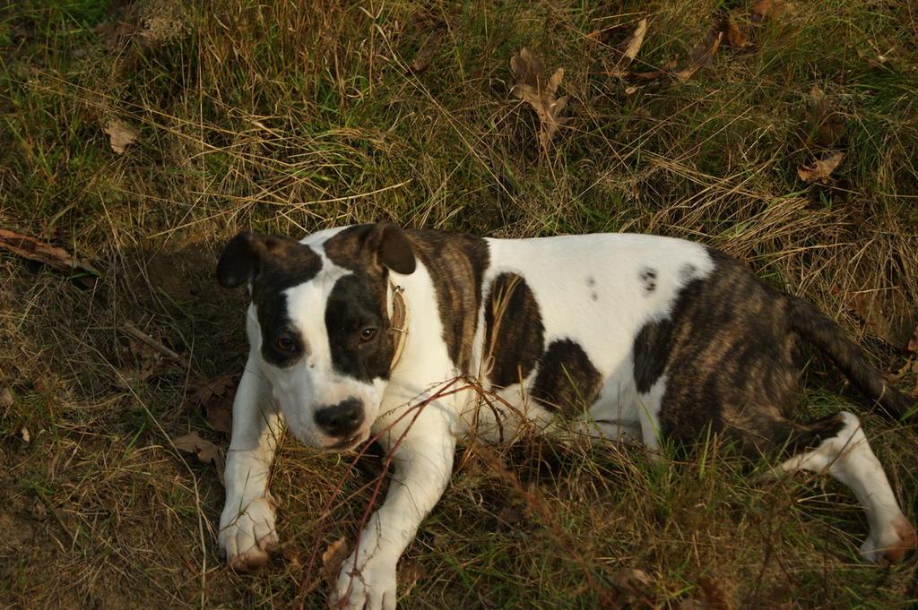 Pokazywać się nie możemy nawet jeśli byśmy chcieli bo nos niedopigmentowany. A za miłe słowa dziękujemy :) Jeśli zaś chodzi o wymiary to na tyle na ile gówniarza udało mi się zmierzyć (a łatwe to nie jest) to wygląda to następująco: wysokość w kłębie - 44,5 cm obwód klatki - 58,5 cm obwód szyi - 37,5 cm obwód głowy - 40,5 cm waga - 16,5 kg Na wadze przybiera dokładnie kilogram tygodniowo i z dnia na dzień zaczyna bardziej przypominać asta :D Jest więc nadzieja. Puki co jest dość mały ale ponoć jego matka też wolno rosła. Mam nadzieję, że to prawda i jeszcze będzie z niego pies ;)