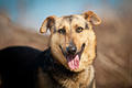 Kiedy już wszyscy pojechali dostałam bojowe zadanie - założyć obrożę strachulcowi czyli Sherlockowi i wydłubać go na pierwszy spacer. Jeśli dobrze liczę to Sherlock jest w fundacji już kilka miesięcy. Jego pierwsze zdjęcia na stronie są zrobione w słoneczny dzień, a za kojcem widać zieloną i soczystą trawkę. W opisie przeczytamy, że w jego bagażu znajdziemy tylko lęk, samotność i złe doświadczenia z ludźmi. Tak więc zabrałam elegancką obróżkę i poszłam zmierzyć się z mądralą. Na początku zostałam solidnie obszczekana ale i wyprzytulana przez Marcysię, z którą jest w boksie. Swoją drogą Pani Iza powiedziała też, że Marcysia kategorycznie odmawia spacerów gdyż jakaś Pani dopuściła do tej samej sytuacji jak z Charliem - popieścił malutką pastuch :( Ale wracając do Sherlocka. Po obszczekaniu, obwąchał i sprawdził czy jestem bezpieczna. Zaraz potem były głaski i po kilku próbach obroża była założona :) Wyjście z boksu poszło nam sprawnie ale wychodzenie ze stajni już nie tak szybko. Po dłuchich minutach, chodzeniu w przód i cofaniu się, głaskach ośmielających i wąchaniu zwiedzającym wyszliśmy na zawnątrz. Sam dwór trochę chłopaka przestraszył ale szybko zabrał się za wąchanie i zwiedzanie. Na początku bał się każdecho ruchu, pękniętego patyczka, szeleszczącej torebki na wietrze ale jak już się oswoił to zasuwał jak profesjonalista :) Co jakiś czas odwracał się do mnie uśmiechnięty jakby był z siebie dumny! Zrobiłam mu kilka zdjęć w lesie ale załączam wam też te pierwsze ze strony abyście mogli porównać sobie jak wymężniał Sherlock :)