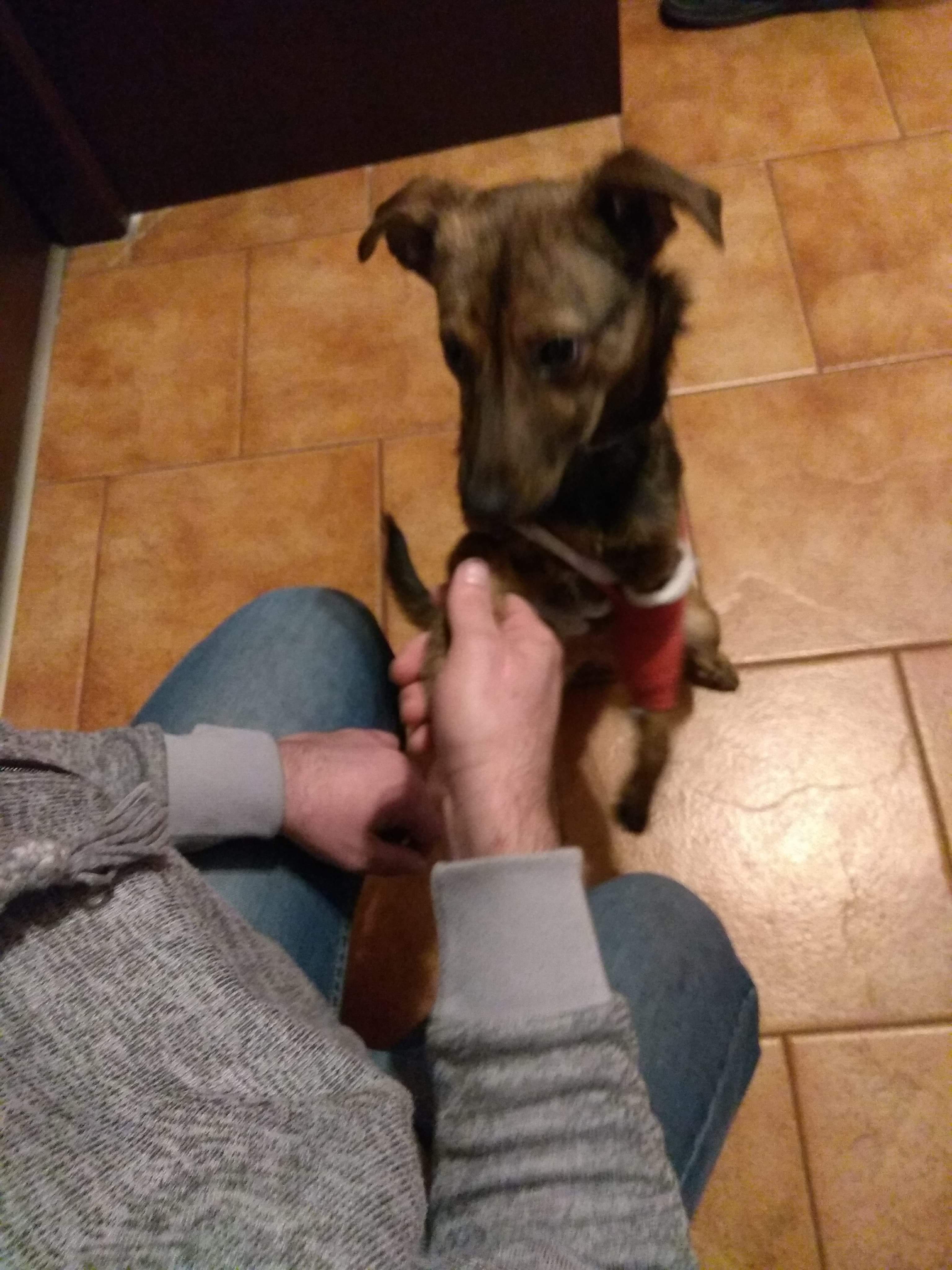 Lejdi miała być u nas do końca wyleczenia łapki, ale dr Wydra powiedział że w KRK łatwiej o rehabilitację dla małej niż u nas w Kielcach;)