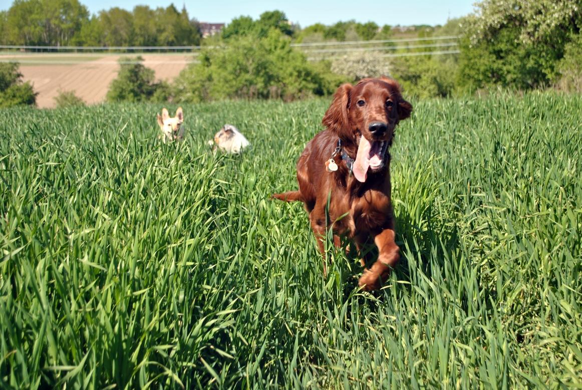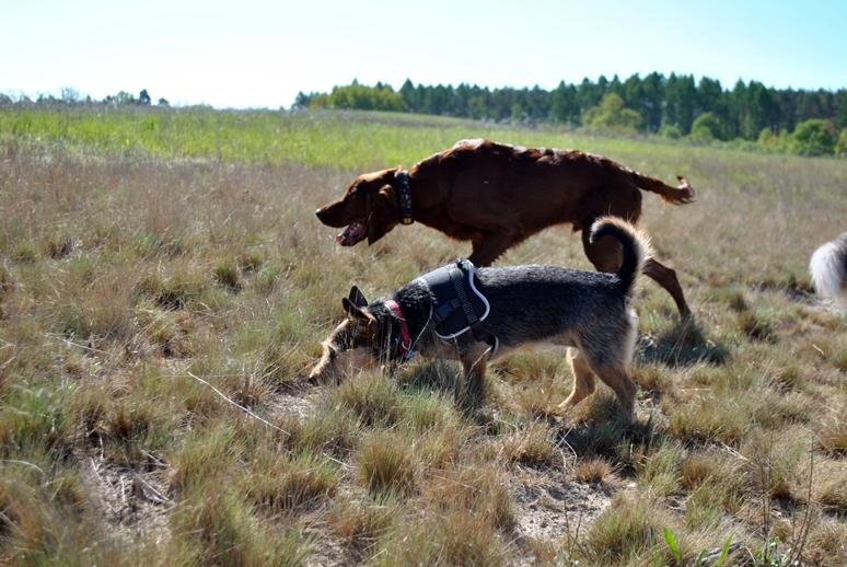 Też uwielbiam patrzeć jak przeczesuje pole i od czasu do czasu coś zwęszy. Nie ma jeszcze aż takiego instynktu, ale gołębie go interesują :D