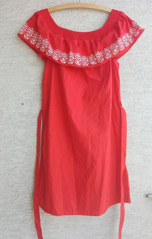21. Podkładki pod kubki, filiżanki itd 2 duże - średnica 17 cm 4 małe - średnica 14 cm CW 8 zł 22. Naszyjnik CW 4 zł 23. Sukienka nowa z metką. Rozmiar 34 Pod pachami 2 x 44 cm Pod biustem w miejscu przecięcia 2 x 36 cm Długość od ramion 134 cm Z przodu na dole dwa rozcięcia po 50 cm Cieniutki materiał, u góry i do miejsca rozcięcia na dole cienka podszewka. Z boku zamek CW 10 zł 24. Sukienka - haftowana falbana do rozciągnięcia na ramionach 100% bawełna Pod pachami 2 x 52 cm W biodrach 2 x 54 cm Długość od ramion 94 cm Pasek CW 12 zł