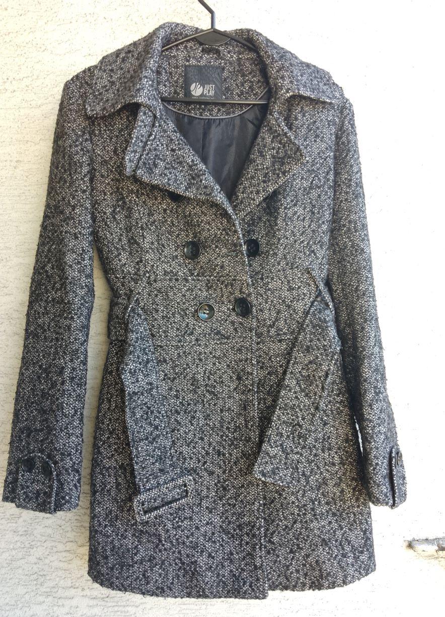 1. Płaszczyk/kurtka Nowa z metką 80% poliester, 20% wiskoza Z podszewką Pod pachami 2 x 53 cm W biodrach 2 x 56 cm Długość 85 cm CW 20 zł 2. Płaszczyk/kurtka Używany, stan bdb 10% wełna, 90% poliester Pod pachami 2 x 50 cm W pasie odcinany 2 x 46 cm Długość 84 cm Kieszenie CW 18 zł Koki-99 za CW Można zapiąć pod szyję
