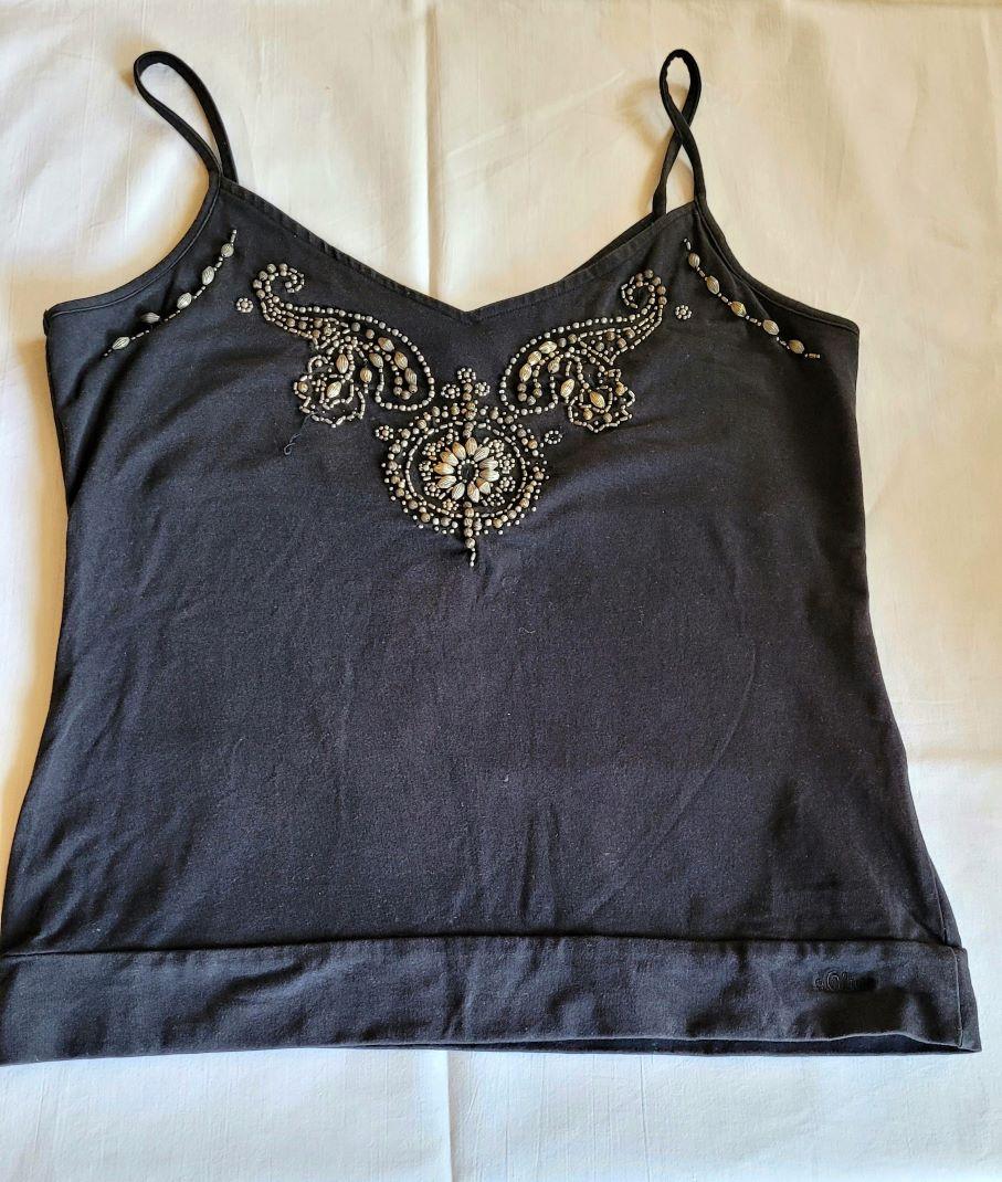 6. Sportowa bluzeczka Pod pachami 2 x 45 cm Długość 65 cm CW 5 zł 7. Bluzeczka Pod pachami 2 x 40 cm Długość 68 cm Wzór z naszywanymi koralikami Z tyłu do pasa koronka CW 5 zł 8. Bluzeczka z siatki Pod pachami 2 x46 cm Długość 58 cm CW 5 zł 9.Bluzeczka Lekko błyszczące odcienie złota i brązu Pod pachami 2 x 44 cm Długość 58 cm CW 6 zł 10. Top - 100% bawełna Pod pachami 2 x 40 cm CW 5 zł elmas za CW