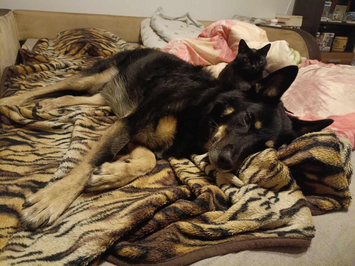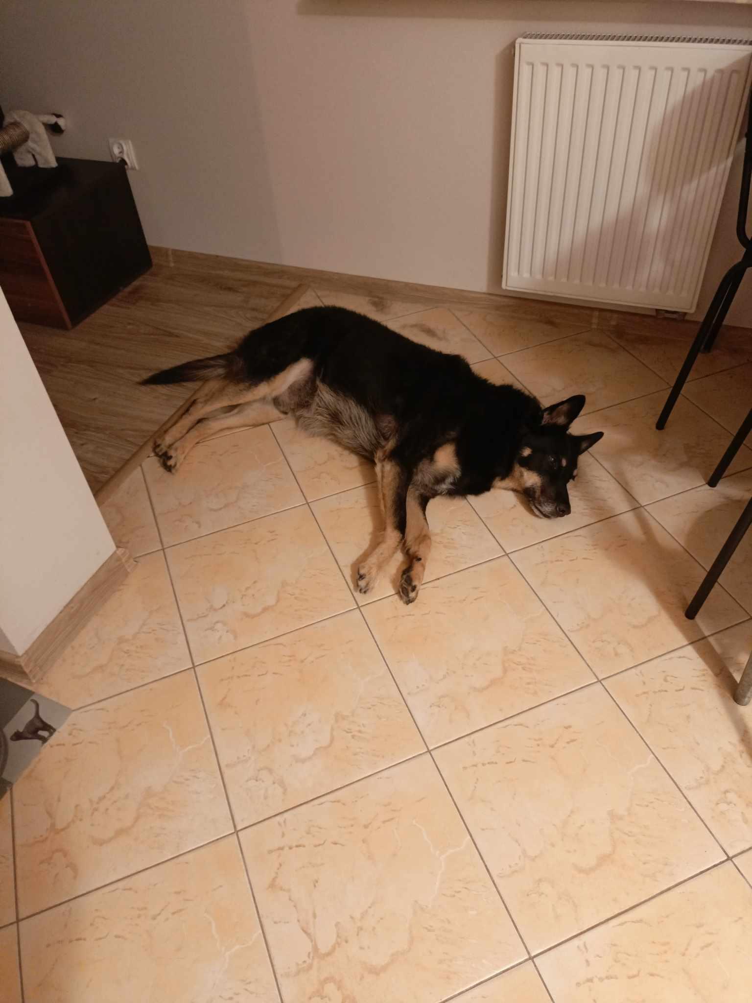 Takie info z domku Maxa. Na moje pytanie jak się miewa: Bardzo dobrze, wszystkie badania w normie. Z zachowania to znajomi mówią, że pies nie do poznania z tym, jaki był dwa lata temu. Już nawet rzadko biegnie do drzwi, kiedy ktoś wchodzi do domu, bo tak twardym snem śpi. W zimie mu się troszkę przytyło, bo nie lubi się moczyć, więc rzadziej robiliśmy długie 2-godzinne spacery, ale już się robi cieplej i znowu je wprowadzamy codziennie. I jest bardzo zadowolony, kiedy chodzi w kamizelce z obciążeniem - im cięższa, tym bardziej chce się wykazać