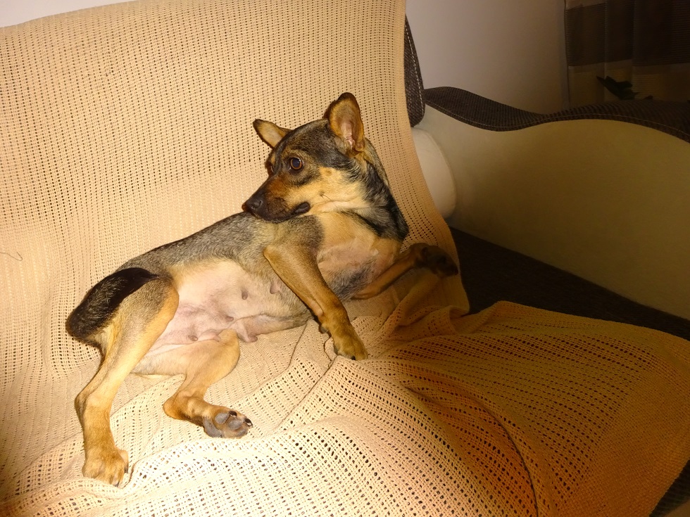 Dzisiaj po każdym spacerku hop na kanapę, i nawet jakieś fikołki wyczynia!!!! Mało tego...spała z panem!!!!!!