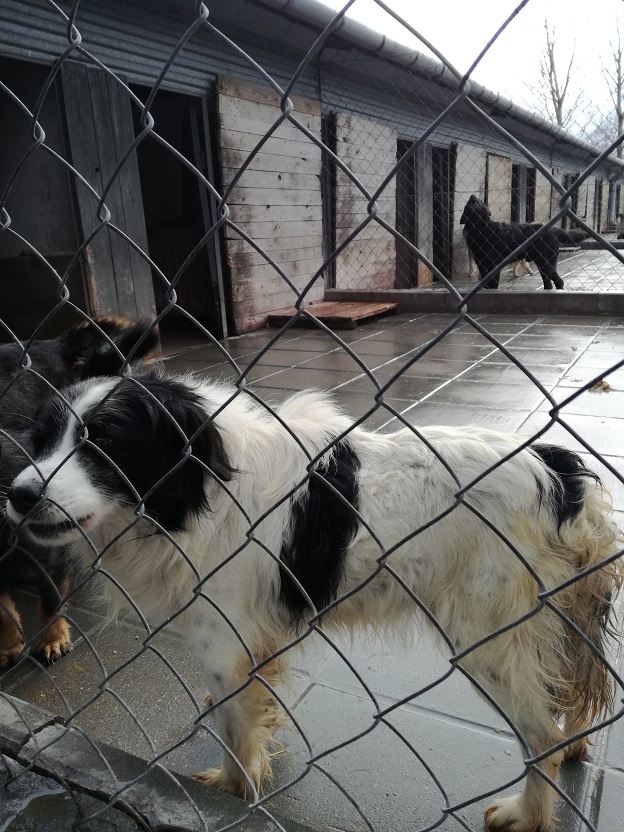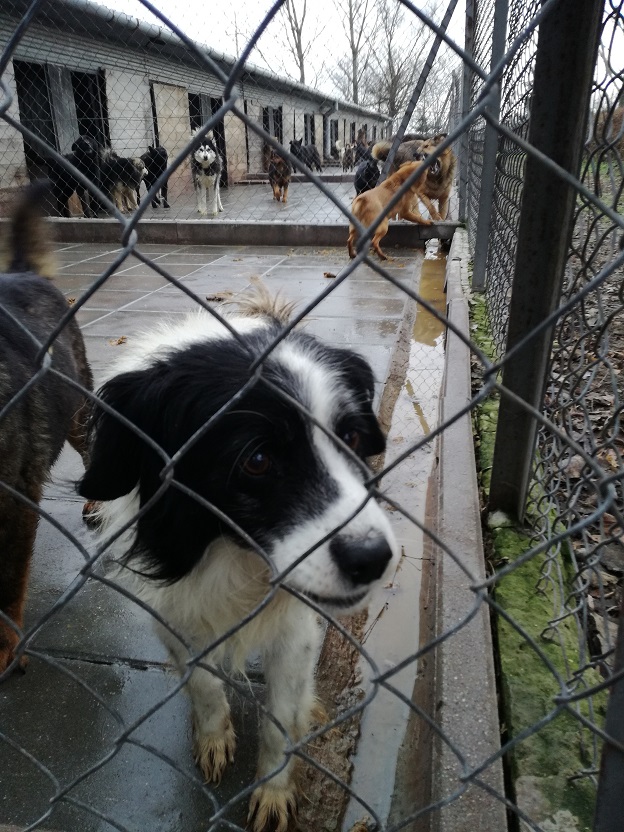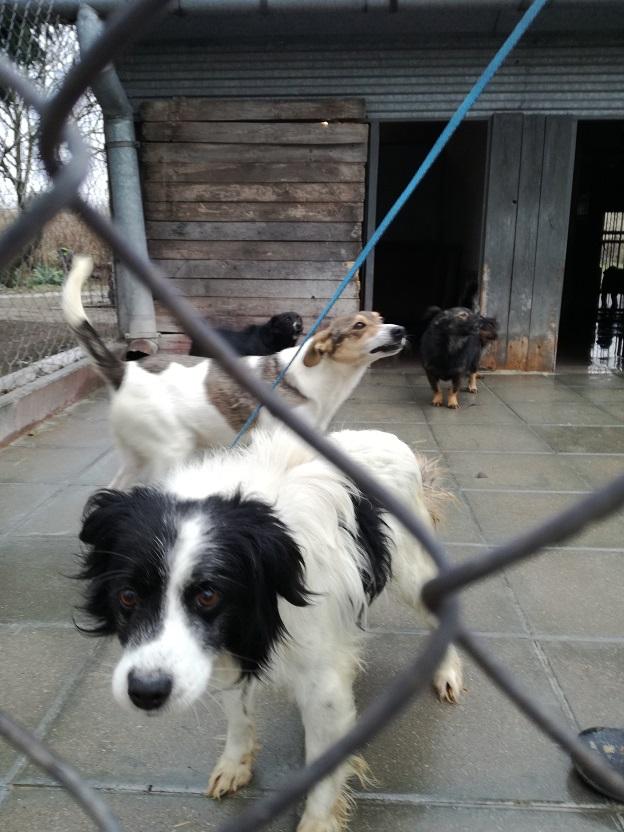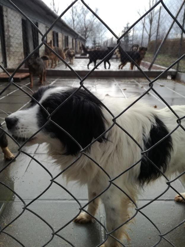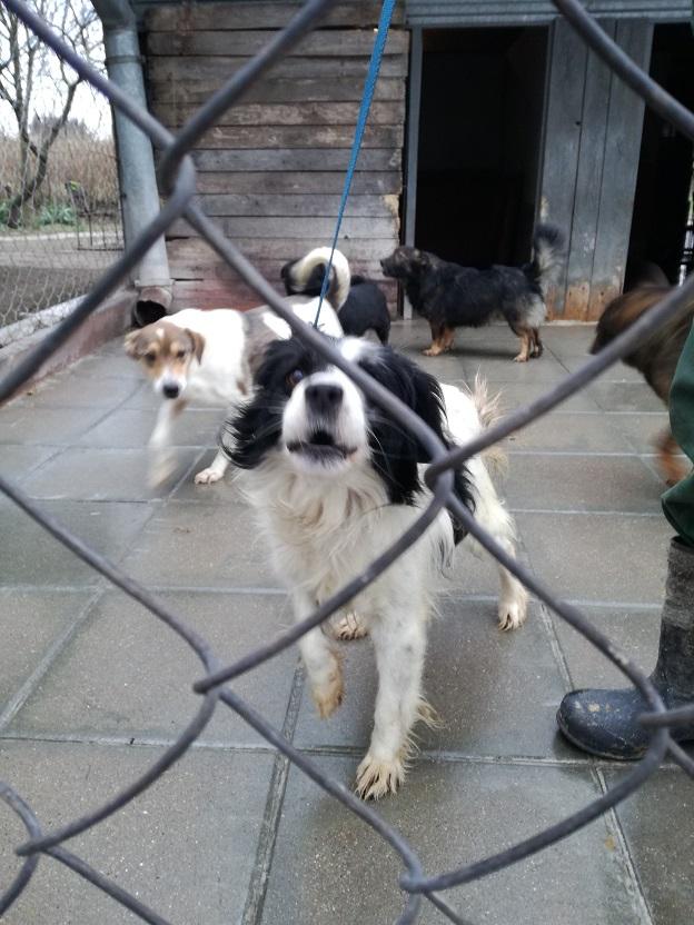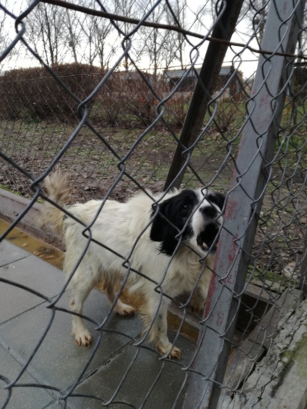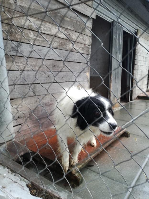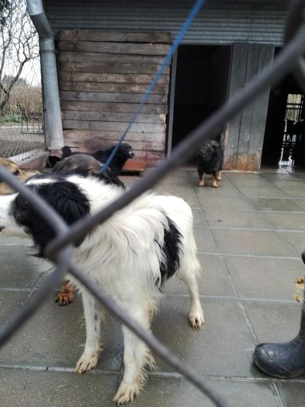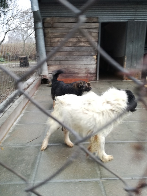 I jeszcze jedna wiadomość, cudna wiadomość!! Piesek, mały, kudlaty, biało - czarny, który siedział przyklejony do budki, na moja prośbę został wyprowadzony!! Pozwolił się wziąć na smycz, poglaskać...On po prostu tak źle znosi schronisko....A wygląda tak: -