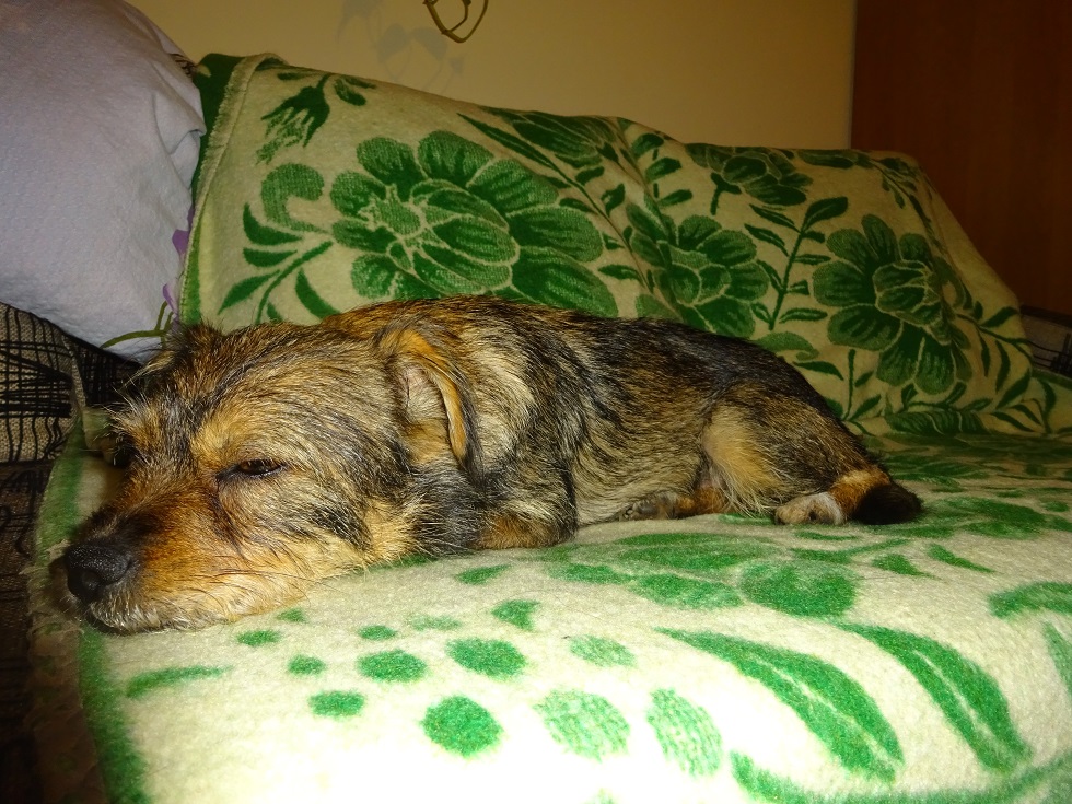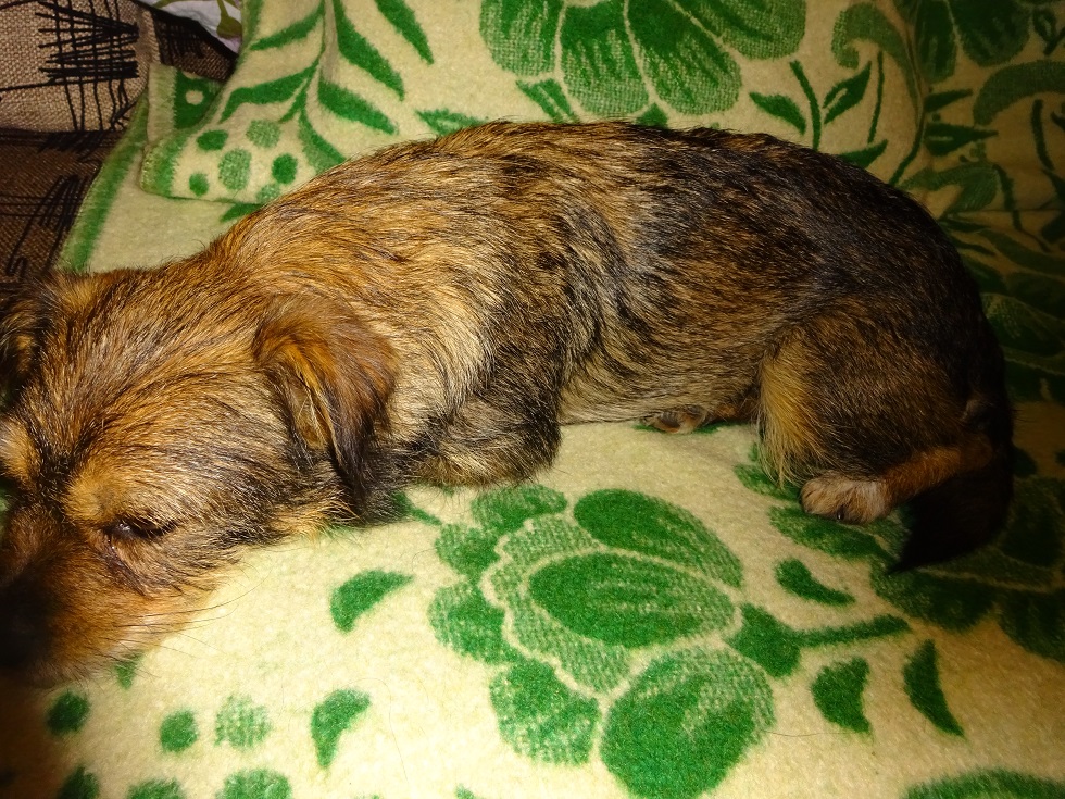 No niestety, jeden domek się wycofał, przygarnął sunię z ( jak to pani określiła) "dzikiej hodowli". Sprawdzamy reakcję Tosi na inne suczki, ponieważ w tym drugim domku córka pani ma sunię i często przychodzi w odwiedziny. Pani cierpliwie czeka, Tosia bardzo się podoba. Dzisiaj miałam zapytanie, "czy to jamnik szorstkowłosy?" Dzwoniła też pani, mająca dwa psy na podwórku, no ale Tosia miałaby być w domu....
