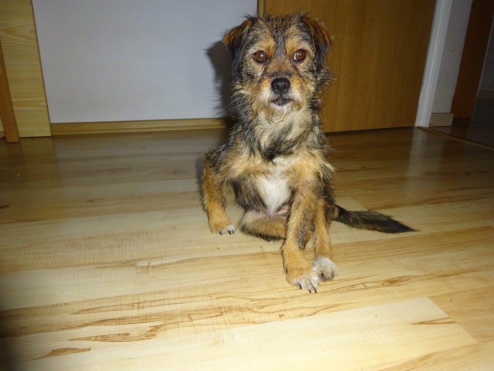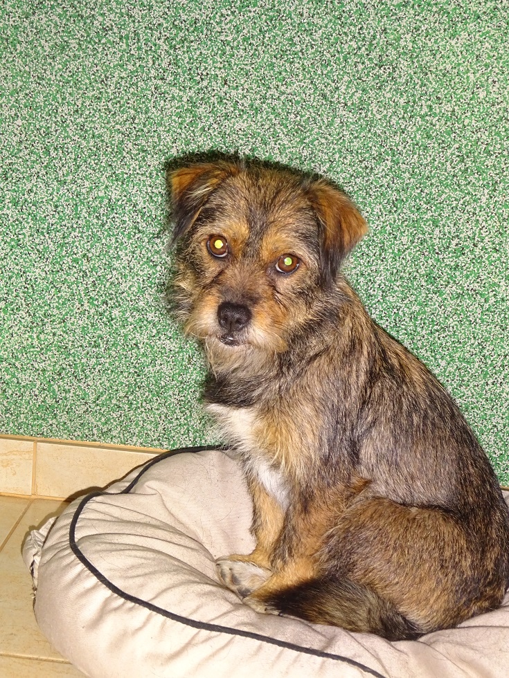 Tosieńka jeszcze niepewna w kontaktach. Podchodzi, wspina się na kolanka i czeka....Nie jest natarczywa. Lubi być głaskana, brana na ręce, ale na razie eksplozji radości nie ma. Nie potrafi się bawić zabawkami...nie przynosi rzuconej piłeczki, pluszczaczki wącha, ale ich nie nosi. Jest bardzo grzeczna. Na widok człowieka macha ogonkiem. Pięknie załatwia swoje potrzeby na dworze. Spaceruje spokojnie, posłusznie, nie szarpie. Zawsze czeka pod drzwiami, aż człowiek wejdzie, dopiero ona wchodzi, nigdy nie pcha się pierwsza. Podobnie jest z wychodzeniem, ona za człowiekiem... Trochę dzisiejszej Tosi
