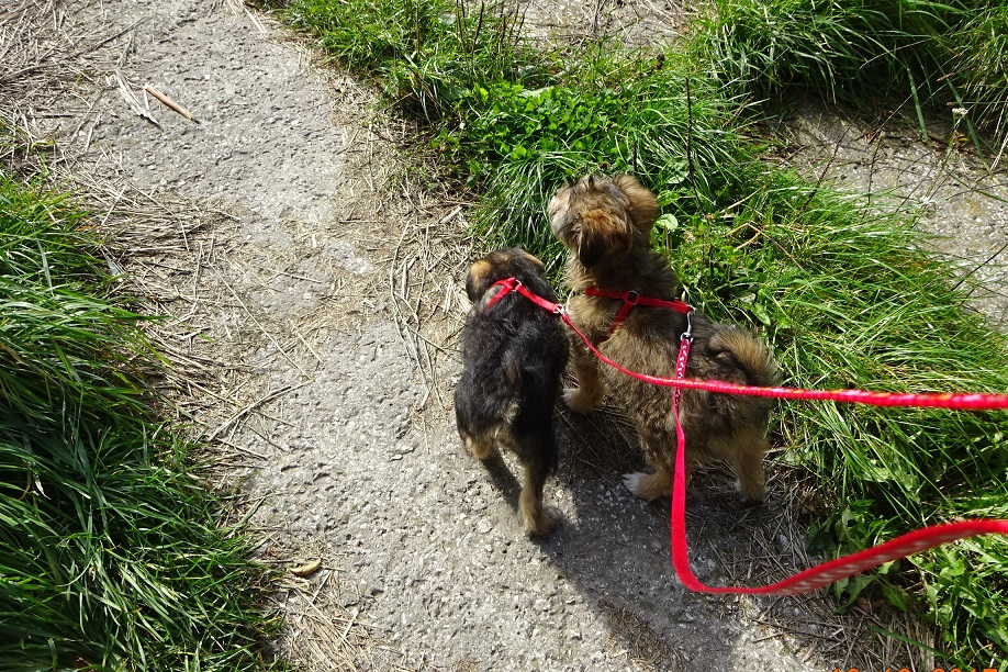 12. Dzisiaj była u nas cudna pogoda, świeciło słoneczko, wiec maluchy wyszły na spacerek w pięknych, czerwonych szeleczkach!! Paradowały dumnie,jakby od zawsze chodziły na smyczy :-)))