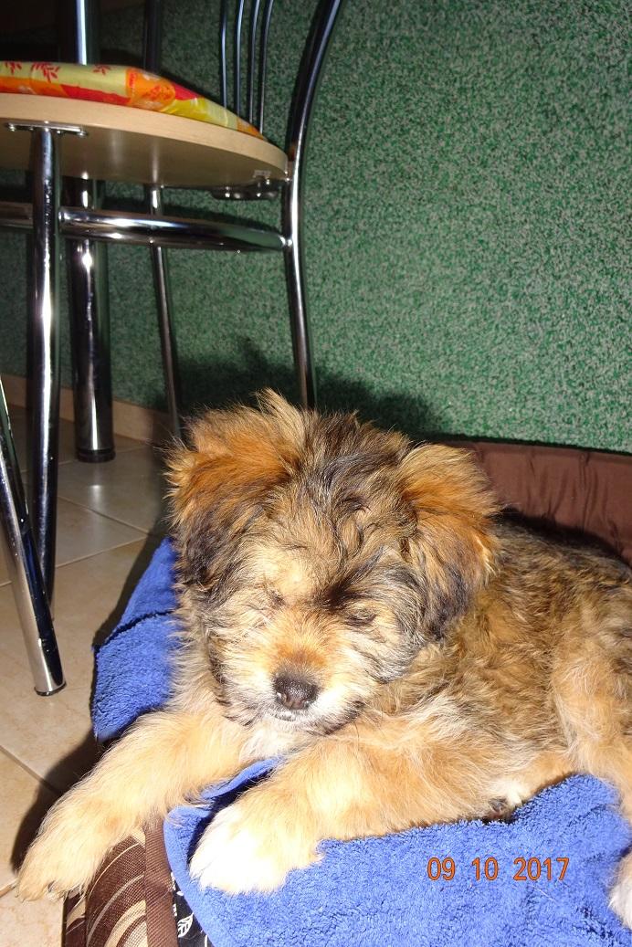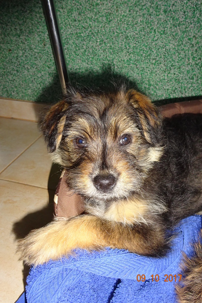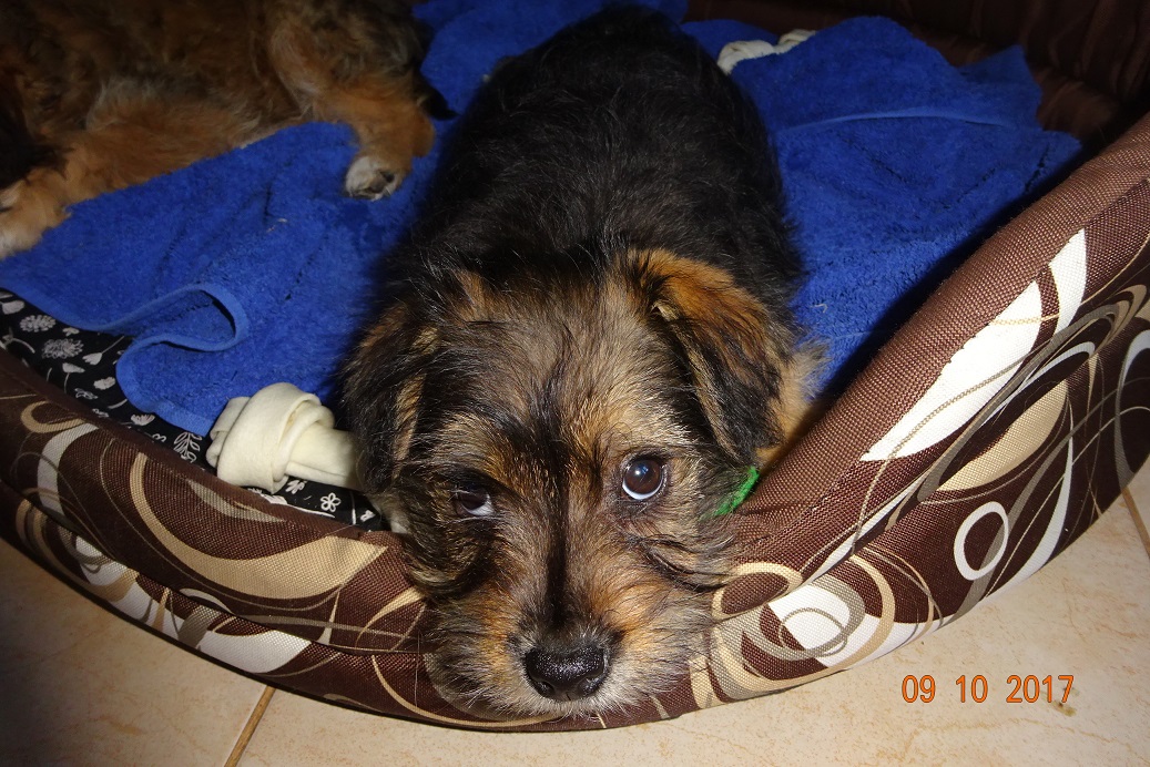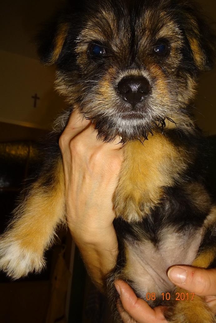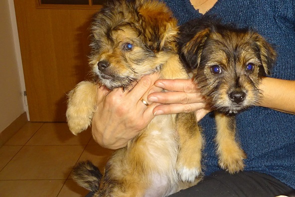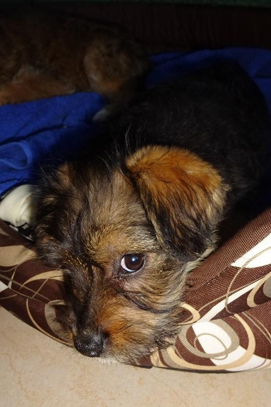 I już jesteśmy po wizycie u pani wet. Malutkie maja ponad 3 miesiące. Ruda sunia waży 2,300 a czarna 2,100. Furorę zrobiła puchata ruda!! Według pani wet urodziła się bez wykształconej gałki ocznej, nawet ta szparka na oko jest taka mniejsza. Drugie oko w porządku, reaguje prawidłowo na światło. Malutka nie ma też ząbków w dolnej szczęce, z przodu. Z tyłu są na dole i na górze. Pani wet powiedziała, że czasami tak jest, że mleczaków nie ma ale stałe wyrosną. Podczas badania cierpliwa, spokojna,pozwalała na wszystkie zabiegi, lizała po czym tylko mogła. oprócz tego oczka wszystko w porządku, osłuchowo super. Mała Mi natomiast gryzła, co tylko złapała w pyszczek,. Przy obcinaniu pazurków wkurzała się. Pani wet powiedziała, że to taki terierek z niej!!! Zdrowa jak rydz!! Sunie dostały preparaty na pchły, robale. Mają wyznaczone terminy na szczepienie. Zostały też wyposażone w czerwone szeleczki. Dorotka zrobi zdjęcia, jak dumnie maszerują!! Wszystkie koszty wizyty wet, karmy, szeleczki pokryje Fundacja ZEA. Maluchy pięknie dziękują!!!