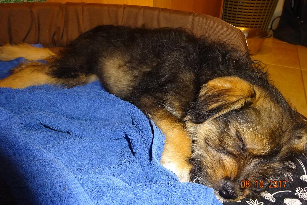 Dostałam takie wieści z Ineczkowego domku: "Tak śpimy jest już lepiej . Je i to sporo najlepszy wprawdzie indyczek z marchewką ale suche też jest ok. Potrzeby fizjologiczne zgłasza i też się skończył problem. Ze mną się bawi i wchodzi na kolanka. Mąż jeszcze trochę straszy ale zaczęła i od niego domagać się pieszczot. Boi się gwałtownych ruchów. Oczywiście dzisiaj nie bardzo pracowaliśmy bo zmienialiśmy się przy maluchu. Jutro jednak będzie musiała zostać sama. Mam nadzieje że nie rozniesie domu. Jest cudowna daje dużo szczęścia i radości. Pozdrawiam AP"