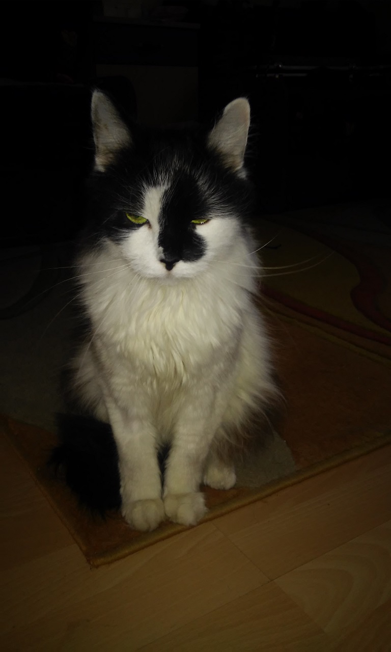 Maurycy pozdrawia :-)) Coraz bardziej się otwiera, nocą zwiedza mieszkanie i miauczy, tak jakby kogoś nawoływał... Jeszcze długa droga przed nami. -