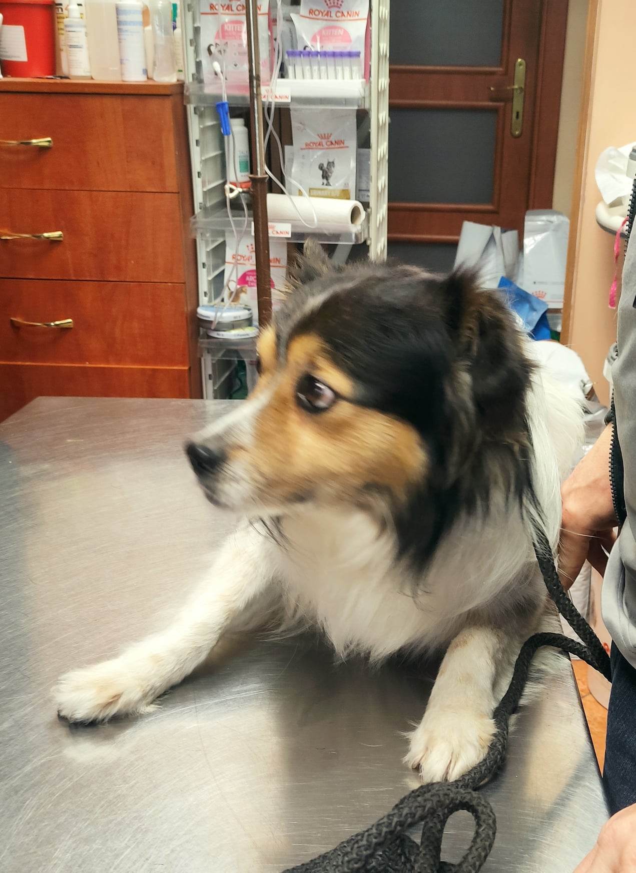9. Pimpuś był dzisiaj u weta. Okazało się ze nie ma szczepienia p. wściekliźnie. Głównym powodem wizyty było zgrubienie na boku, nad tylną łapką, które okazało się kaszakiem oraz ząbki a bardziej takie dwie pozostałości coś jak korzenie. Wet powiedział, że trzeba to usunąć. Poprosiłam Anecik, aby umówiła psiaczka na zabieg. Pimpuś u weta