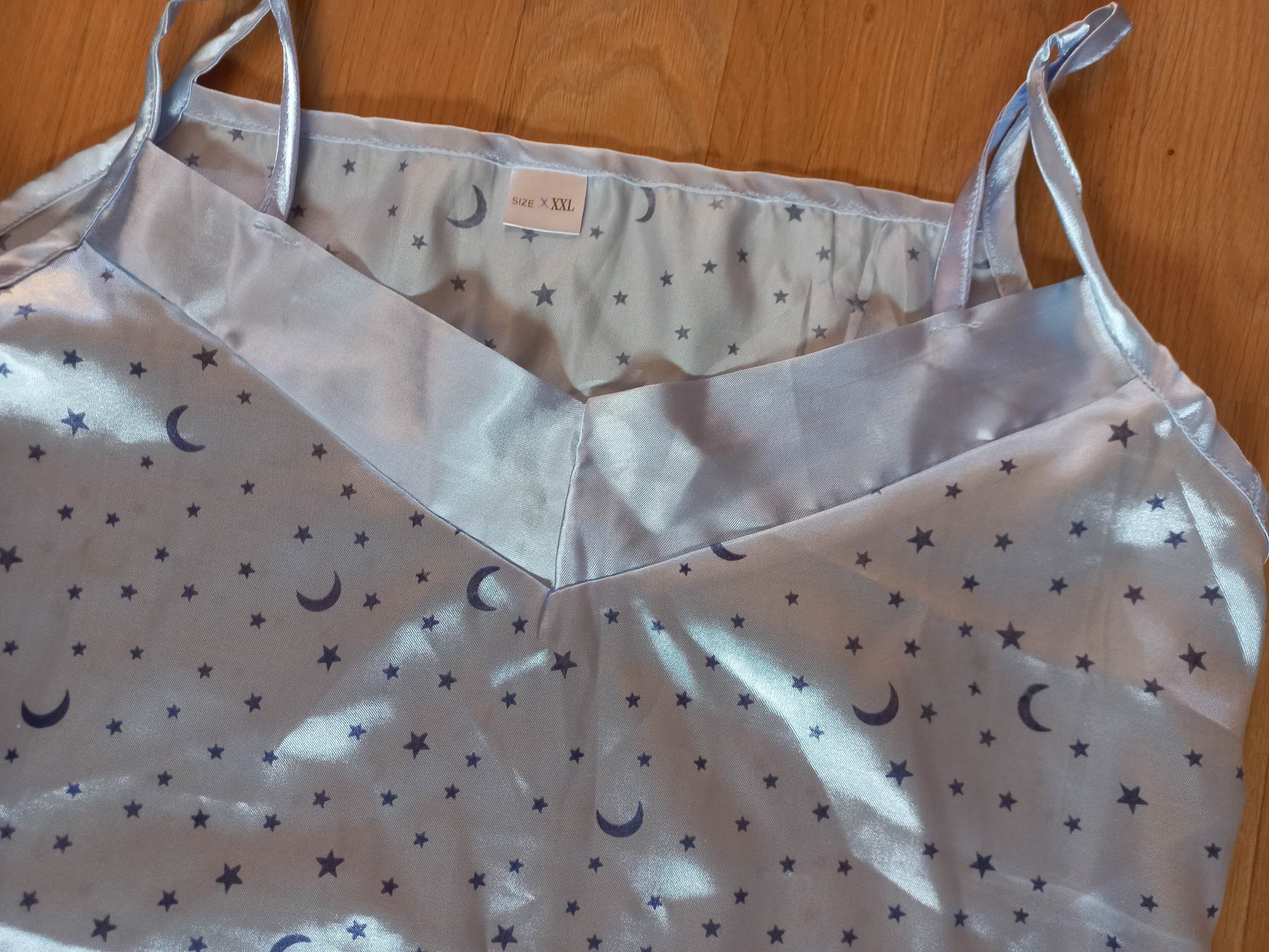 41. Tunika/bluzka duża Yours, na metce rozm. 20, na mniejszą osobę sprawdzi się jako oversize czy krótka sukienka, 87% wiskoza 13% poliester, kolor ciemniejszy niż na zdjęciu CW 8 zł KT 11 zł 42. Żakiet, na metce firma Janus, rozm. 38, skład 60% wełna dziewicza, 40% jedwab, podszewka z wiskozy CW 8 zł KT 11 zł 43. Bluzka koszulowa H&M, rozm. z metki 34 czyli XS ale będzie dobra też na S, 100% poliester, w dotyku lejący z fakturą coś jak żorżeta CW 4 zł KT 7 zł 44. Leciutka bluzeczka w kolorze zgaszonego różu, wygląda na L/oversize, brak metek, marszczenia, zapięcie przy dekolcie na guziczek CW 6 zł KT 10 zł 45. Spodenki chyba dziecięce, kąpielowe? Dł.44cm, w pasie gumka bez naciągania 28cmx2, biodra 35cmx2 bez naciągania, chyba rozciągliwa lycra, brak metek CW 4 zł KT 7 zł -