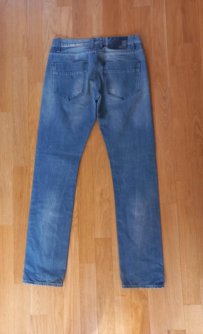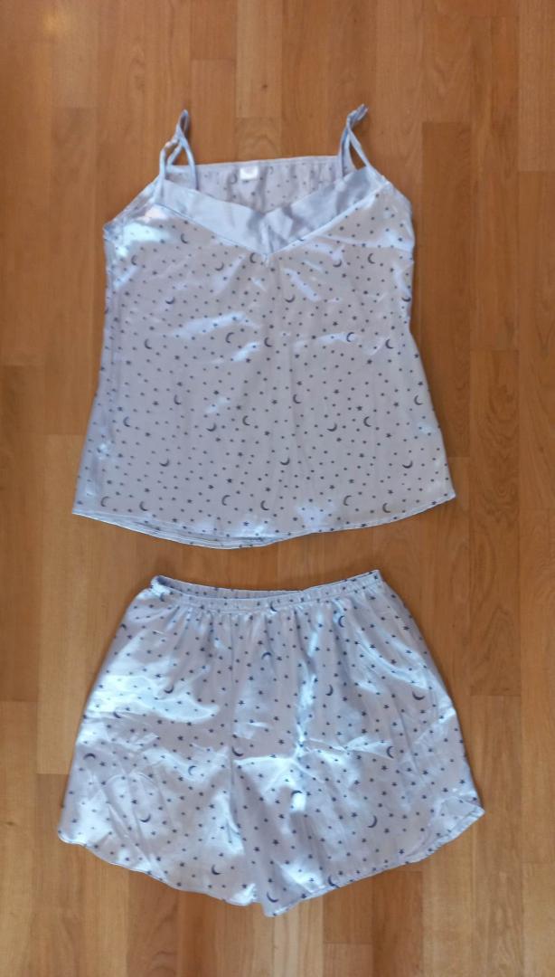 61. Elegancka bluzeczka, kolor jasnoszary (na zdjęciu wyszedł ciemniejszy) z połyskiem, ciekawe wykończenie przy szyi, z tyłu dwa guziczki i guziczki też przy mankietach - można zapiąć; brak metek, rozmiar M+, materiał cieniutki, trochę lejący, lekko prześwituje CW 8 zł KT 11 zł 62. Bardzo fajna kurteczka jeansowa Kate collection, rozm. M, kieszonki niby funkcjonalne ale zaszyte do połowy, 65% bawelna 27% poliester, 8% spandex CW 12 zł KT 15 zł 63. Spodnie jeansowe rozm.na metce 30/32, dł.106cm, pas 40cmx2, biodra 49cmx2, męskie. CW 9 zł KT 12 zł 64. Szaro-błękitna piżamka, rozm.XXL, dl.od pachy 43cm, szer.między pachami 47cm; spodenki - biodra 57cmx2, w pasie gumka rozciągająca się do 52cmx2, CW 9 zł KT 12 zł 65. Lekki żakiecik z podszewką z bawełnianej, cienkiej dzianiny, rozm.M, dł. tyłu 61cm, szer.między pachami 45cm, kolor kawa z mlekiem, brudny beż CW 9 zł KT 12 zł -