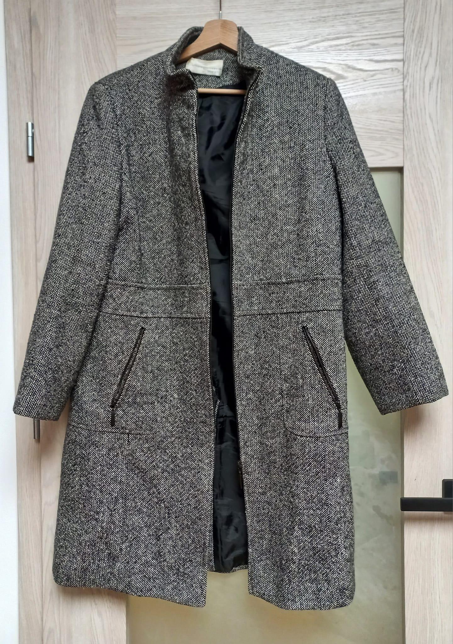 1. Dezodorant damski Play It Wild Playboy 150 ml, nowy, CW 9 zł 2. Bardzo fajny, nowy ale bez metki płaszczyk/żakiet z kapturem Savida, rozm. 38, CW 30 zł 3. Grafitowo-szary płaszcz z tweedu z podszewką, w składzie jest 52% wełny, rozm.16, wygląda na mniejszy, dł. tyłu 95 cm, szer. między pachami 55 cm, dł. rękawa od pachy 39 cm, zapinany na zamek, na biodrach kieszenie z zamkami, CW 11 zł AlfaLS za CW