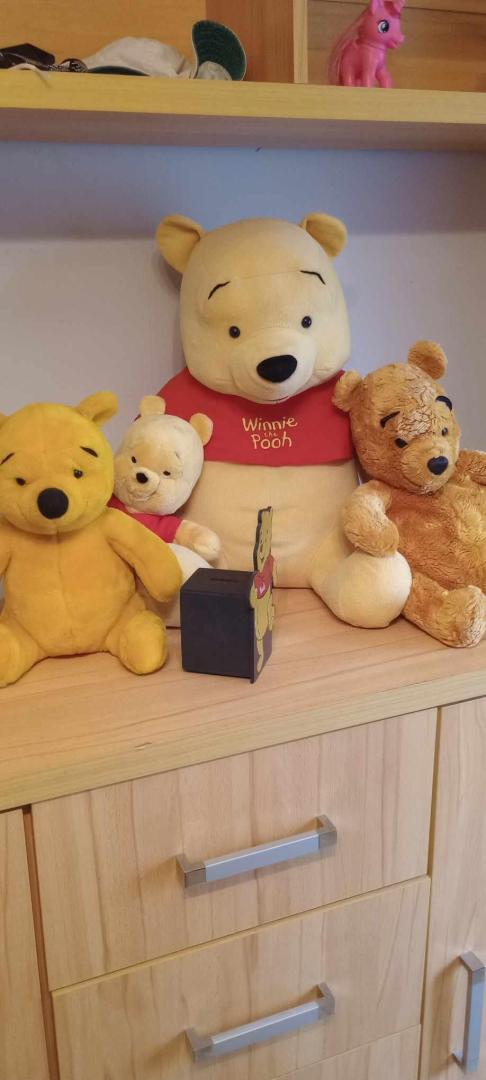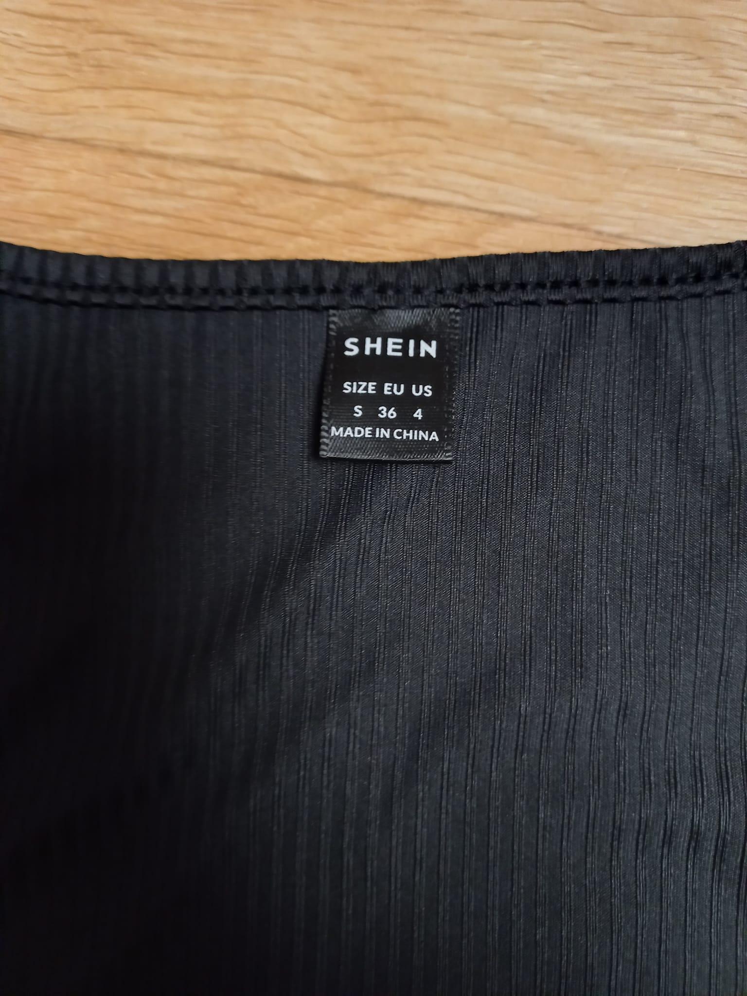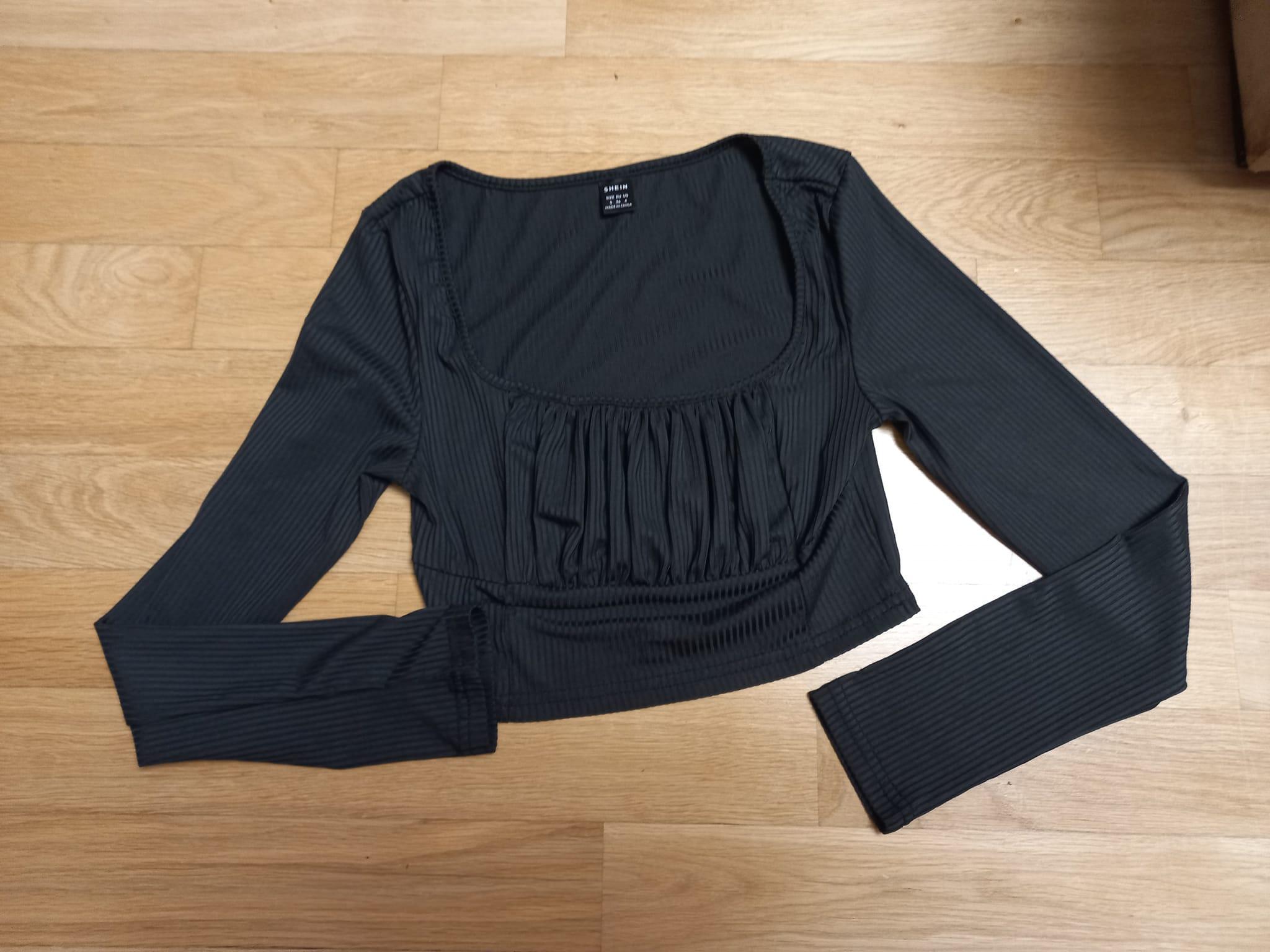 6. 41. Bluzka z wiązaniem, rozmiar S/M CW 8 zł 42. Bluzka H&M z kreszowanego materiału, rozm.36, dl.tyłu 66cm, przód krótszy, szer.między pachami 47cm cw 7zł 43. Czarny, krótki top w prążki, SHEIN, rozm.36, dł.35cm, szer.między pachami 33cm, dzianina rozciągliwa cw 5zł 44. Zestaw maskotek i skarbonka - w sam raz dla tych, którzy kochają Kubusia Puchatka i nie tylko CW 10 zł