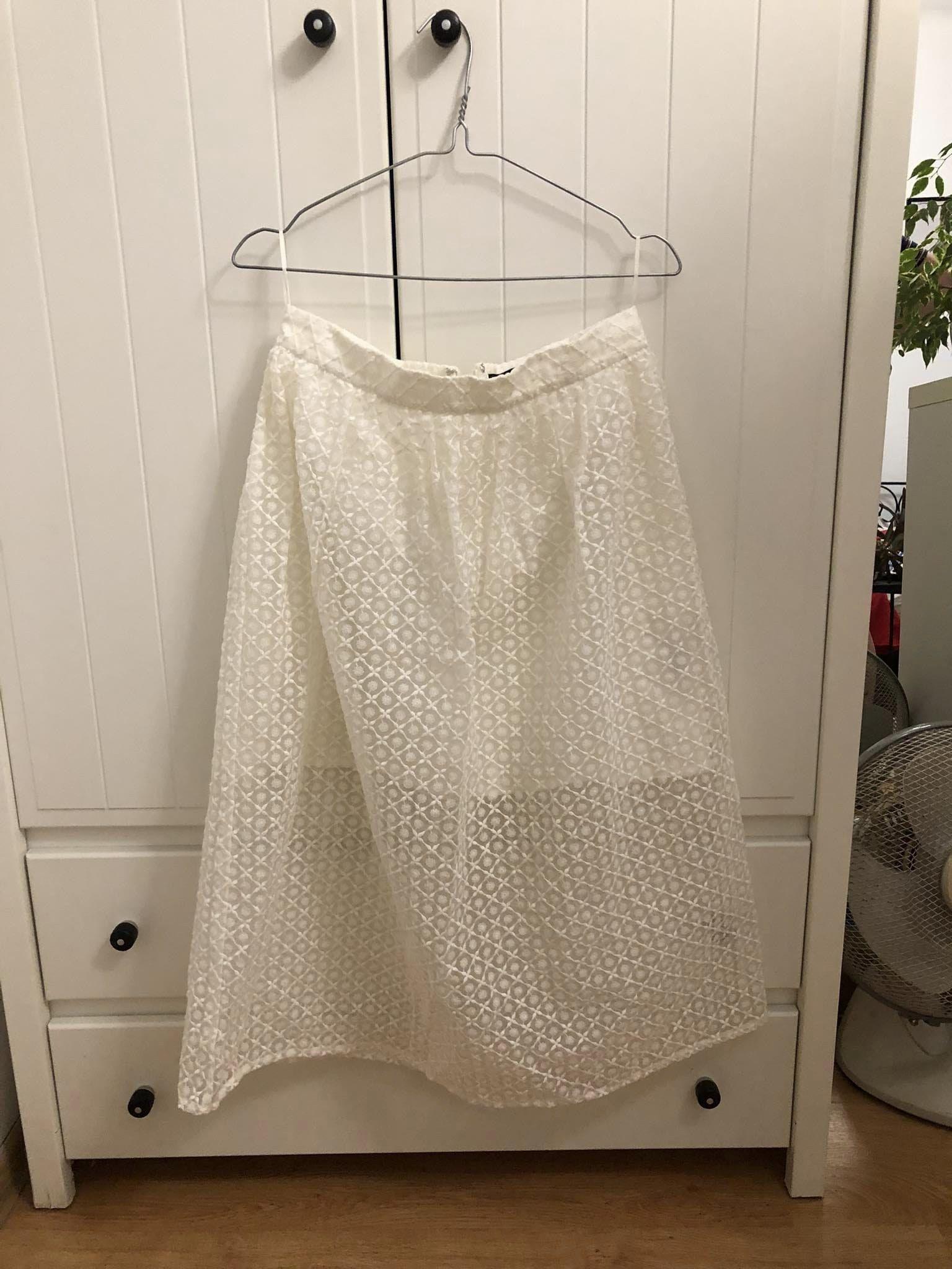 7. 38. Kurtka ortalionowa bez podszewki, chyba męska, rozm.XL, dł od ramienia 76cm, szer.między pachami 60cm cw 14zł 39. Spódnica plisowana rozm. S/M CW 9 zł 40. Ażurowa spódnica S/M CW 10 zł
