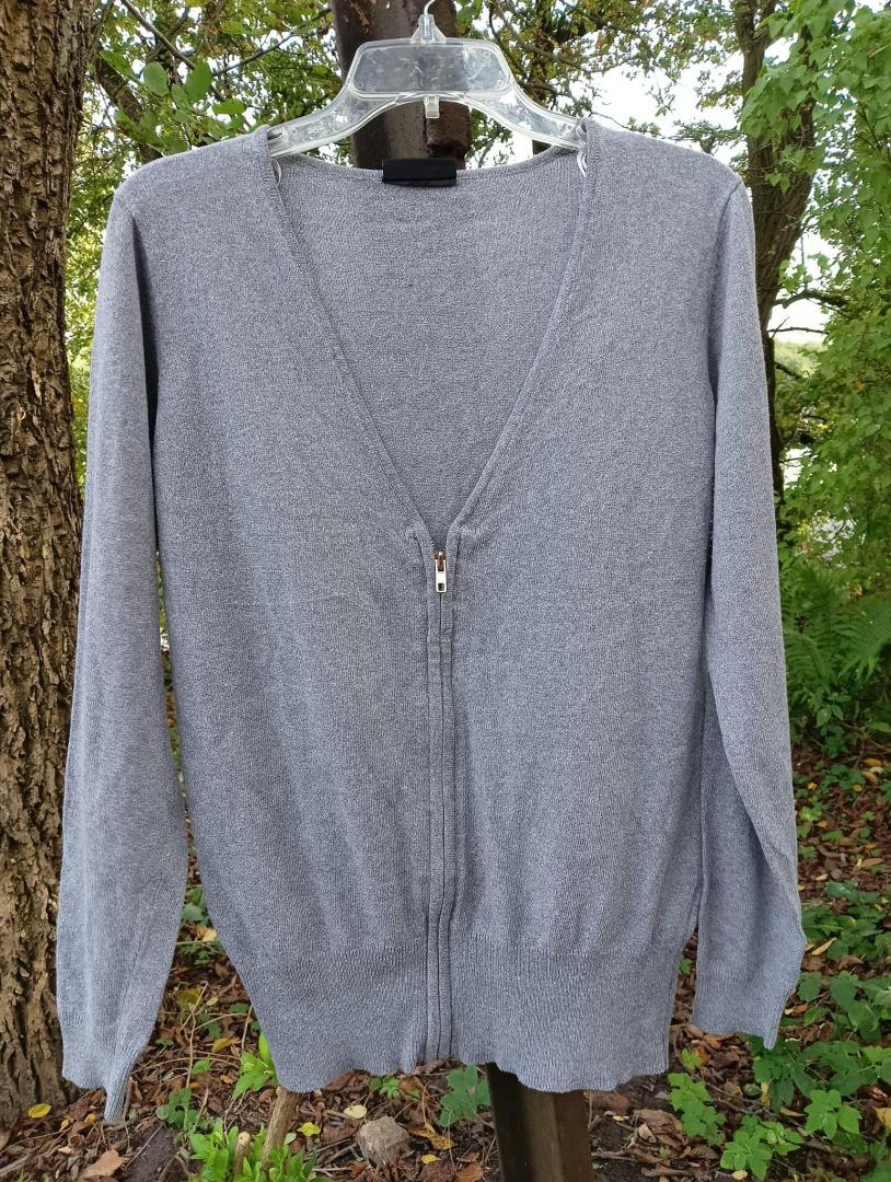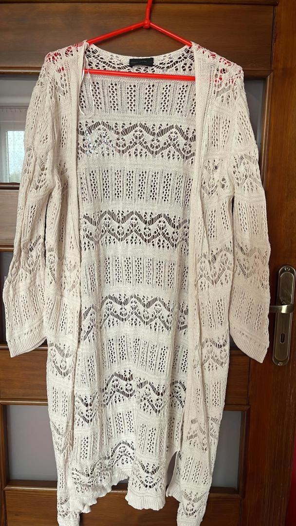 17. 11. Rozpinany sweterek, rozm. L, 50% modal, 30% bawełna 20% nylon CW 5 zł 12. Szary, rozpinany sweterek Janina, rozm. 40/42, 70% bawełna 30% poliester CW 7 zł 13. Szary sweterek z błyszczącym zdobieniem (naklejane elementy), cienki ale miły w dotyku, 60% poliester 27% bawełna 10% wiskoza CW 10 zł