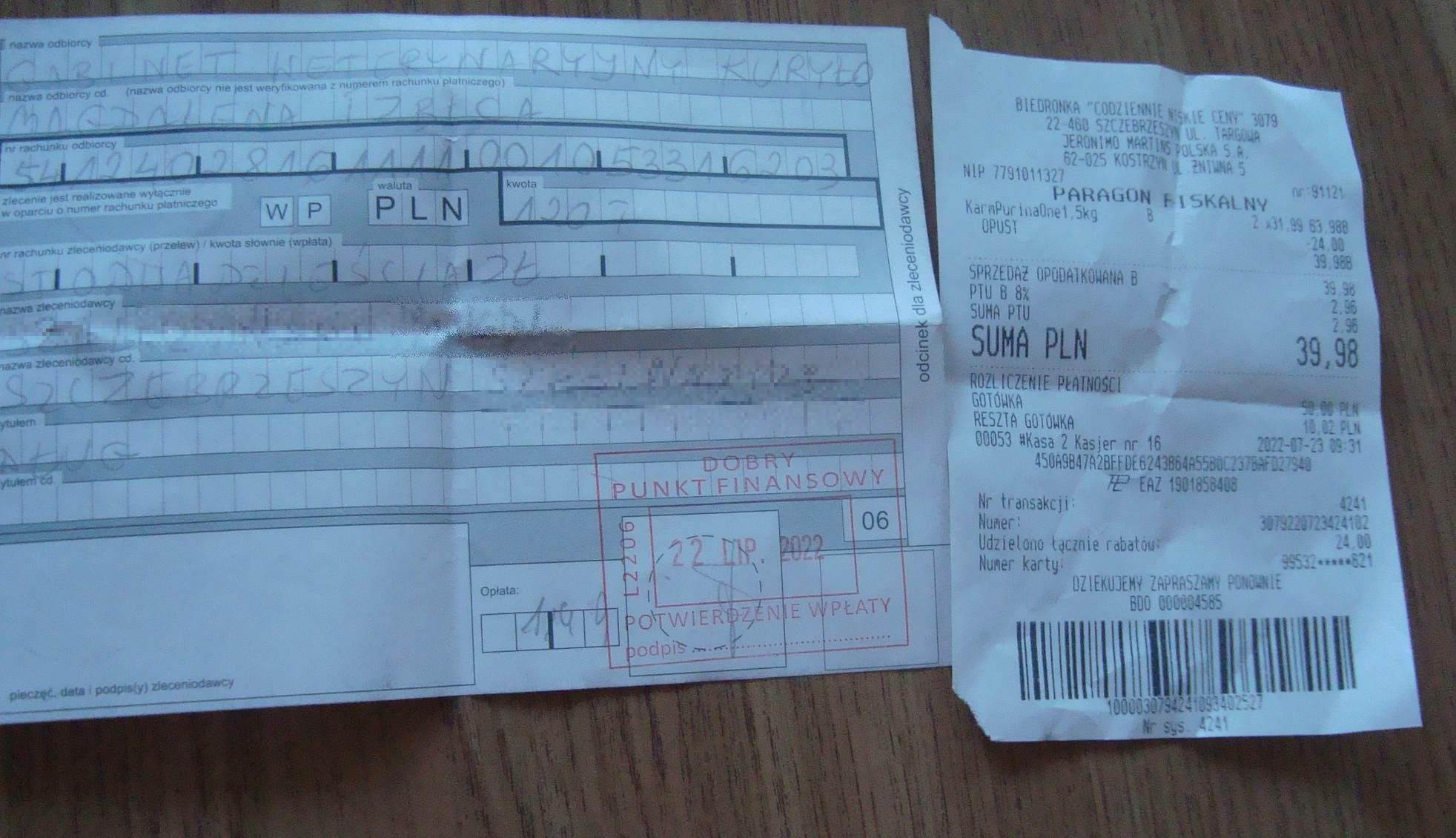 22.07.2022 - 120 zł, Dora1020 wpłata z bazarku na dług ogólny W międzyczasie została dostarczona na kastrację kotka z Suchowoli (częściowo uczestniczyłam w akcji jako koordynator ;d) i opuściła lecznicę, bardzo dzika, wróciła 23.07.2022 w miejsce bytowania po ok. 12 dniach pobytu - zapisuję żeby pamiętać datę W lecznicy cały czas siedza nasze dorosłe kotki Śnieżek, Tinka, Kofik oraz Delma z maluchami (na wylocie). -