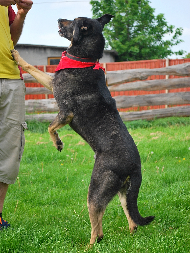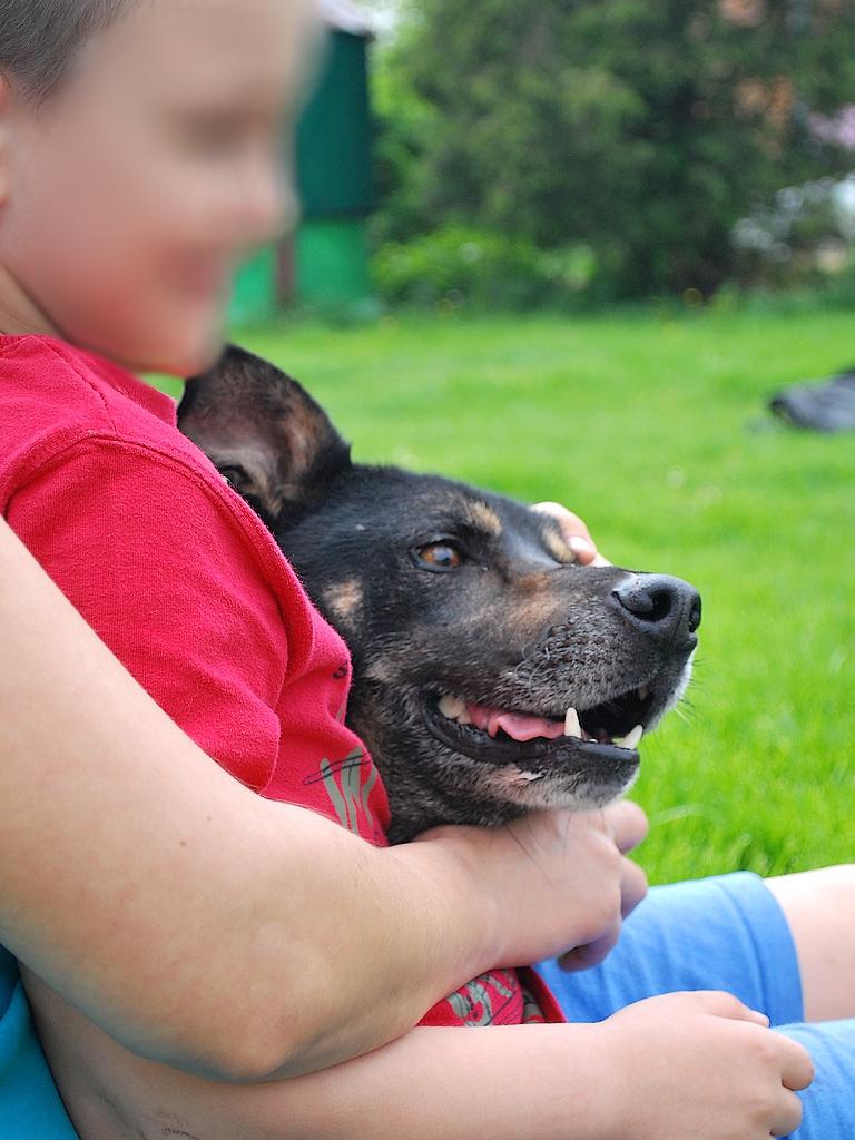 Wiesz Elusia, Huzio jest taki przytulak, taki miziak, że ja zwyczajnie się za Nim stęskniłam. A jak jeszcze zobaczyłam jaki Huzarek jest w stosunku do dzieci, bo niby taki duży pies, a taki delikatny, stanie z boku, patrzy cierpliwie co chłopiec do Niego gada, spokojnie czeka, aż dziecko rzuci Mu piłeczkę, tę piłeczkę aportuje i przynosi chłopcu pod nogi...normalnie mnie rozwaliło na łopatki, cudny psiak i wielka szkoda, że jeszcze nikt Go nie wypatrzył. Dlatego muszę Mu ponowić ogłoszenia na inne miasta bo domek potrzebny koniecznie. Poza tym, pięknie chodzi na smyczy, Beata nauczyła Go komendy "noga" i Huzio trzyma się ślicznie boku człowieka :)