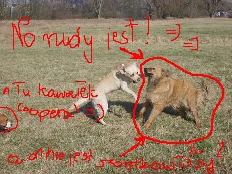 Rinuś Posted March 14, 2007 Author Posted March 14, 2007 Eria w sumie ja tez nie powinnam sie tym przejmowac,bo wiem ze Brutusowi specjalnie to nie zagraza,ale on az do wieczora tego dnia byla jakis dziwny...krecil w kolko,nie mogl znalezc swojego miejsca,ogolnie byl nieswoj...ale na szczescie juz myu przeszlo :) no dodaje fotki z wczorajszego spacerku:multi: i juz zabawa turaj jest Cooper,Frodo i Brutus i cala 4 uhahana :multi: wyscigi?? no jak ladnie chlopcy sie podzielili kijkiem chyba sie zareczaja:evil_lol:zwroccie uwage na ich łapki :eviltong: no i kto musial isc w krzaki zeby Coopera i Lune przprowadzic?:eviltong:wadomo i lewy sierpowy kto wyżej skoczy Brutus zostal powalony na łopatki:cool3: a jak wracalam ze spacerku to jeszcze kolege z gimnazjum spotkalam :)i jego doga niemieckiego Donie :) Brutus sie z niej zakochal:loveu: i Brutusek:loveu: a tutaj suka amstaffa.szkoda ze ne ujełam jej wlasciceila:angryy: jak ten pies wbiegl na łąke to Iza pyta sie tego Pana grzecznie czy piesek nie ugryzie na co on takim textem "nie ręczę":mad::angryy:no rece opadaja po prostu:angryy:jakby chociaz ugrzyla mojego Brutusa to facret by mnie popamietal:mad: Quote