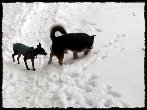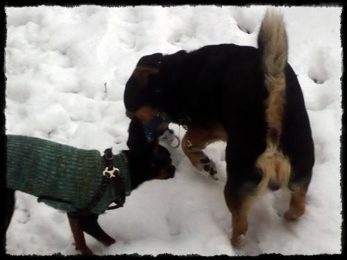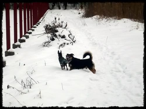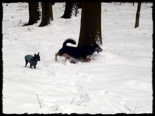 Paulina_mickey Posted February 15, 2009 Author Posted February 15, 2009 My dziś bylismy na spacerku w lesie. Najpierw w ogóle zastanawiałam się czy opłaca się brać Milo, ale stwierdziłam że go wezmę i okazało się że dobrą decyzję podjęłam :multi: Oba z Mickey ganiały jak nie wiem, się wyszalały a potem musieliśmy z powrotem nieść Milo, bo mu było tak zimno :cool1: Quote