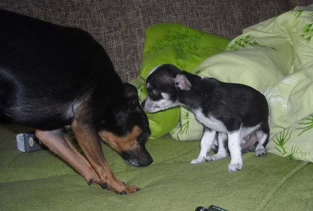 Paulina_mickey Posted September 19, 2011 Author Posted September 19, 2011 To chihuahua Zuzu -dziewczynka, na razie zapoznaje się z chłopakami. Z Milo ok a Mikiego się boi (z wzajemnością :diabloti:) ale to pewnie spowodowane jest wielkością. Quote