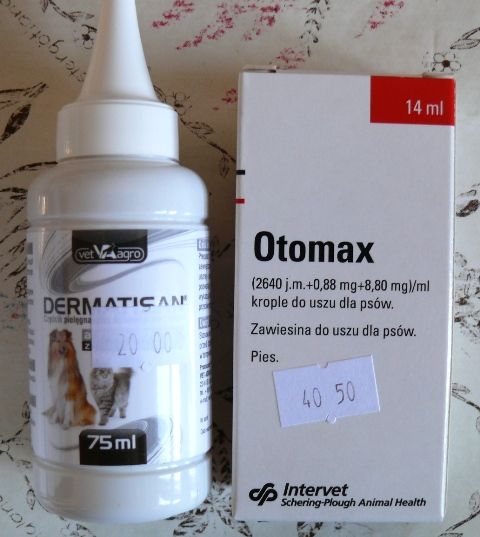 Zosia123 Posted March 16, 2013 Author Posted March 16, 2013 Keflex na ucholce, 4 opakowania, plus oslonka (osłonę wzięłam najtańszą i na razie tylko 1 opakowanie, w razie gdyby miał po tym biegunkę): 85,36 zł. Keflex ma brać 3 razy dziennie, właśnie zjadł pierwszą kapsułkę. I nowe kropelki do uszu: Dermatisan do oczyszczania i Otomax lekarstwo. Niestety to co wcześniej kupiłam (Otodine) nie jest zdaniem pana doktora tak dobre, co Dermatisan. Razem 60,50 zł. To stosujemy od wczoraj. Reksio jest bardzo grzeczny przy zakraplaniu, jak mu pokazuję kropelki to robi taki zrezygnowany "wyraz pyska" i poddaje się pokornie operacji. Reksio pójdziemy wkrótce z torbami przez Ciebie... :( Quote