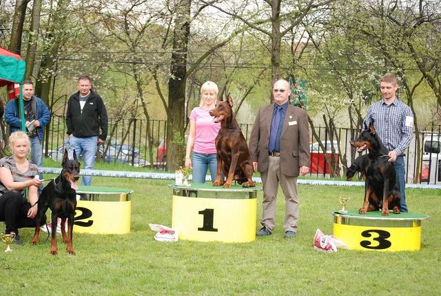 Tyna21 Posted May 7, 2013 Author Posted May 7, 2013 Dziękuję, dziękuję za miłe słowa ;) Dochodzimy do siebie po majówce :D W sobotę na Dobermann Star Vato zajął 3 miejsce na trzy psy, ale z oceną doskonałą i bardzo ładnym opisem. W stawce w oby dwa dni był z Grand Mollis Armanim i Amber na pewno wie co to za piesek hehe. A w niedzielę na międzynarodówce Vatuś miał 2 miejsce i ocenę doskonałą i bardzo ładny opis, a Armani 3 hehehehehehe ;) Bardzo się z tego małego zwycięstwa cieszyliśmy :) Jak tylko ogarnę fotki to coś tu wrzucę. Quote