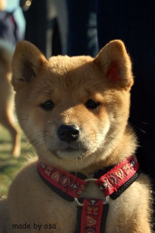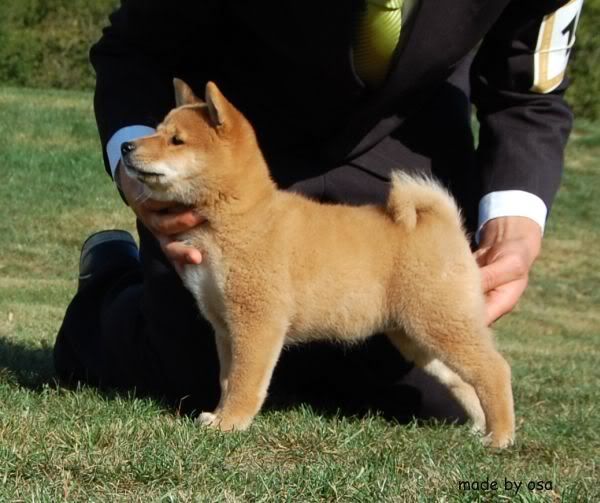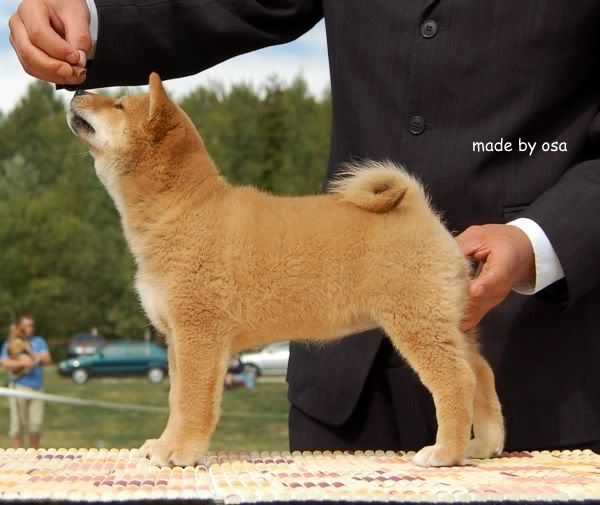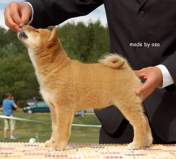 Nazywa się "papierowo" MISAKI Hneda Tvrz ,małolata z niej straszna,urodziła się 7.07.2009 w Czechach i jej pierwszą wystawą była Specjalistyczna Wystawa Shiba Klubu w Zbraslaviu koło Brna.Przyjechała tu towarzysko coby kawałek świata zobaczyć,poznać bliższą i dalszą szybową familię,no i...../jak już napisała Magda;)/ popic białego winka w doborowym,polskim towarzystwie:evil_lol:Tak se popijała i popijała,a że gawniara z niej ,to co chwila musiała zdrzemnąć się:diabloti:i tak jej wychodziło,że zasypiała niemal z nochalem w moich trampkach....to coś musiało znaczyć:roll:....Pojechałam sobie na wystawę,miałam się dobrze bawić/ i tak było:loveu:/,miałam popić sobie czeskiego pifka,zrelaksować się ale NIE MIAŁAM ZAMIARU KUPOWAĆ 10 PSA....:shake: Niezbadane są wyroki... trarattaatam .....itd.:cool1:stało się.....mała mnie zaczarowała,skrzeczała mi radośnie do ucha,że będzie dobrą shibą,zniszczy niewiele,zasika tylko moje łóżko,jeść będzie śmieci papuzie,podrapie mnie po twarzy,zadba o moją kondycję,czyli wiać będzie przykładnie ,ojjjj dużo mi nagadała i cóż:roll:-wyjęczałam ją z pomocą Gosi i Magdy:loveu:Mam małą Misaki :multi::loveu:.Dopiero po chwili pomyslałam o tym co ja powiem w domu.....:cool1::razz:Jak Darek do mnie zadzwonil,to powiedziałam mu,że mam dla niego prezent....;)a ten przypomniał sobie,że kiedyś chciałam z Czech przywieźć papugę-arę,więc wyszło mu,że groźbę swą spełniłam i tarabanię do Białegostoku czerwoną papugę:diabloti: Bez sensu było to prostować,chłop jakos szczególnie dzioba nie piłował więc już i tak było ok.Jak przyjechałam z Magdą,to łypał okiem w strone samochodu,gdzie siedział Omar i minę miał nietęgą,ale jak wyjęłam z voyagera malutką to był cały hepi:diabloti:-przecież on papug nie kocha,a szybalony baaardzoooo!:loveu: