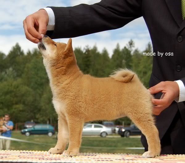 Siedzieliśmy sobie na ławeczce przy ringu, a Artur mnie trąca i mówi- "ty, patrz, jaka zajebista shiba mała tam chodzi". Więc patrzę, a że ślepa jestem, to mi trochę zeszło, patrzę dalej, na koniec sznurka małej- a na końcu sznurka Kristina moja ukochana. No to lecimy.