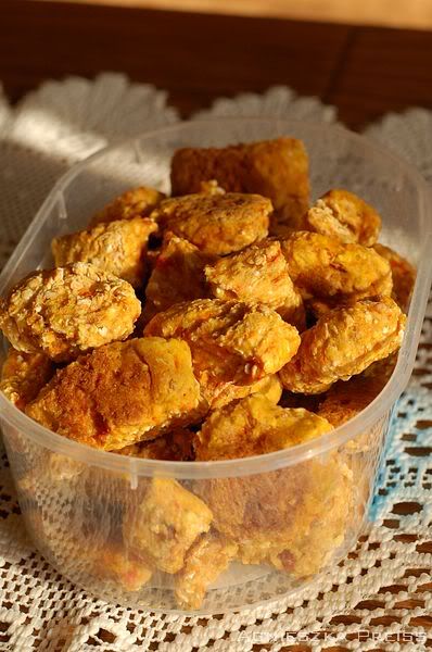 asiol Posted October 19, 2008 Posted October 19, 2008 Wczoraj zrobiłam te serowe ciasteczka z pierwszej strony. Dodałam troszkę więcej wody i oleju, bo ciasto było za suche :cool3: No i smażyło mi sie z pół godziny :cool3: Ale wyszły super, pies się nimi obżera jak prosiaczek Quote