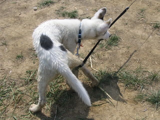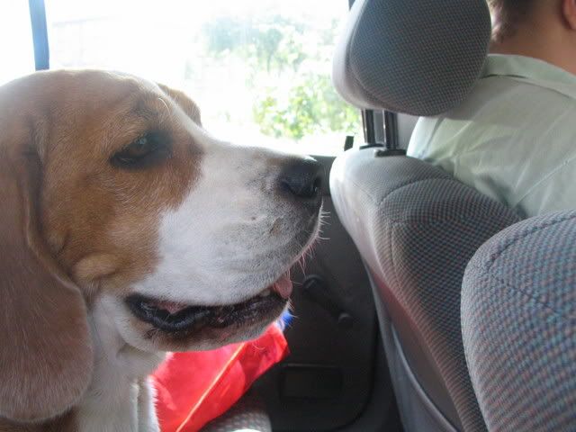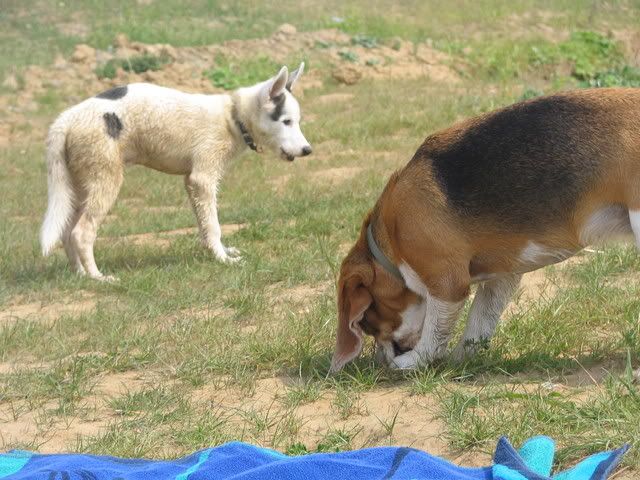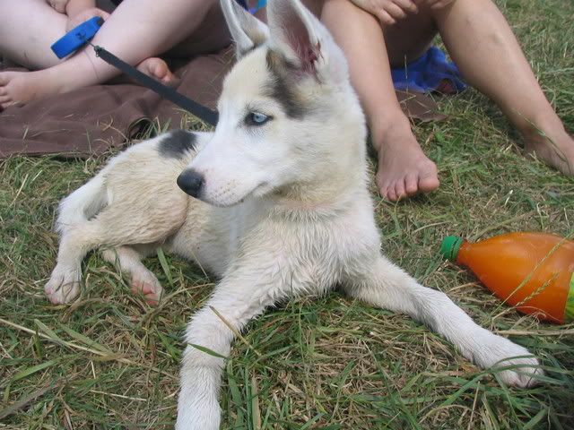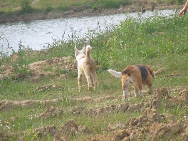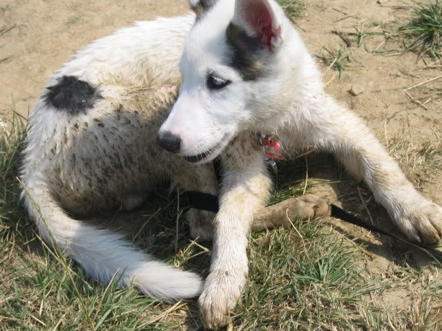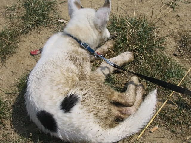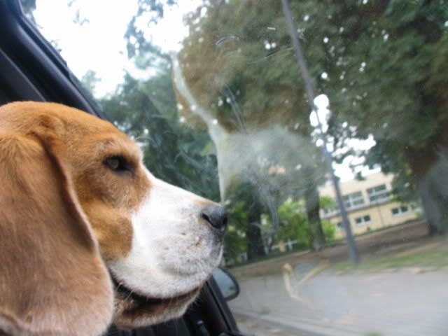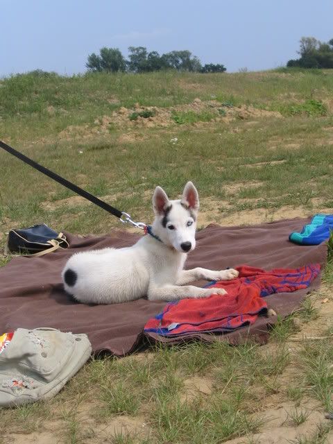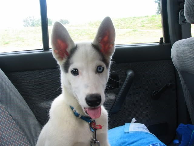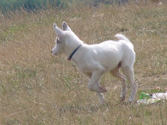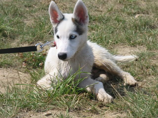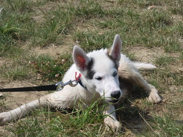 Ajka jest bardzo ciekawa świata i uwilebia podróżować samochodem :multi: Ja sama się dziwię jak ona z nim wytrzymuje kłapie tymi żebami na niego tak aby go odstraszyć ale niu ugryźc a on to ma w nosie. Biegnie biegnie wpada w nią, łapą ją zaczepia , tyłkiem ją szturcha mały zbój i ostatnio nauczył sie szczekac i teraz biega koło niej i szczeka :evil_lol: tego nauczyła go Ajka. Nauszyła go również jeśc różne śmieci z ziemi. Same negatywne rzeczy go uczy :mad: