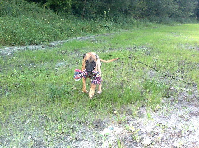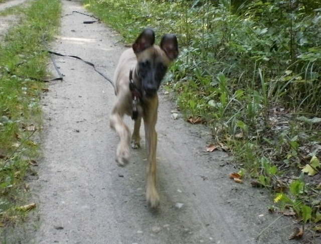 Gezowa Posted September 8, 2012 Author Posted September 8, 2012 Dobra, dawno nie było zdjęć, więc czas najwyższy... Sprzęt oczywiście słaby, więc nie liczcie na super ujęcia :lol: Młody dzisiaj miał spotkanie z dwoma podrostkami... samoyeda i bodajże labradora. Oba żywe i dużo większe od niego, więc młody zachował rezerwę, raczej krył się zamiast dołączyć do szalonej zabawy. Labek go zgniótł, bo jednak pipeć (zwłaszcza 3msc) to nie samoyed, więc po pisku młodego zaraz przystopował, polizał i pognał bawić się z tym większym. Ogólnie nie było aż tak źle, chociaż myślałam, że Ejden zachowa się inaczej. On po prostu oglądał i siedział mi między nogami, wcześniej jakby chciał uciec, nie wiedział gdzie ma się podziać... No tak, wkraczamy w cudowny okres "ojej, pies, czy on mnie zje? Lepiej uciekam" :roll: Ale jest też dobra wiadomość, że zaczął ignorować auta, te osobowe jak i ciężarowe. Mogą mu śmigać koło ucha, a on nic. Problem jeszcze mamy z ludźmi... Nie podbiega już do rowerzystów czy biegaczy, ale jak ktoś coś do nas mówi... to on cieszy się jak czubek. Poranki u nas wyglądają tak: A tu już spacerowo: Quote