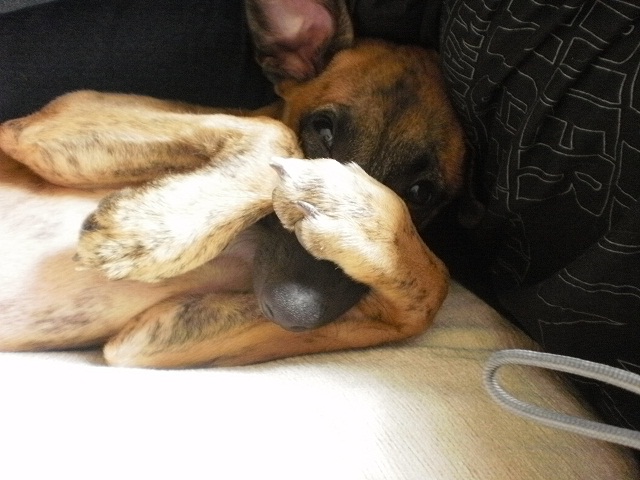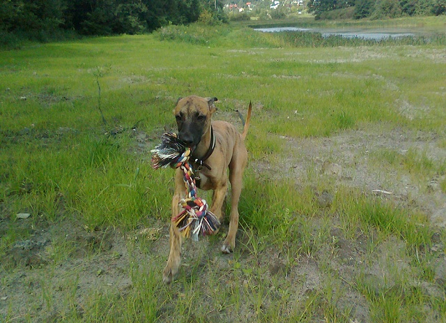 Gezowa Posted August 31, 2012 Author Posted August 31, 2012 U nas jest tak, że młody jak dostanie głupawki to biega i skacze na nas w celu sięgnięcia po zabawkę, ale nie zawsze trafia... Serio wyglądam jakbym wyszła ze spotkania ze stadem dzikich kotów :razz: Teraz jest lepiej, nie odczuł tego nawet, chociaż trochę histeryzował... Wszyscy wiemy, że obcinanie pazurów nie boli, chyba, że trafi się na unerwienie... Jego bardziej denerwuje chyba to, że ktoś go trzyma i coś mu robi. Podobna sytuacja zresztą jak pisałam o zastrzykach w celu nawodnienia... więc już wiem nad czym muszę popracować :razz:. Kupiłam młodemu dzisiaj sznur bawełniany i od dzisiaj jest jedną z ulubionych zabawek (wygrywa na razie piszcząca papuga z biedronki z piłką i sznurkami :lol:). Szampon, bo dzisiaj wreszcie go wykąpać trzeba... no i rękawicę do czesania, bo zauważyłam, że gubi włos. Garść sierści z niego wyczesałam... A powiem wam, że zniósł to całkiem dzielnie. Chciał na początku gryźć, bo myślał, ze to nowa zabawka. "NIE", "super pies!" i ten bawełniany sznur zdziałały cuda, więc po kilki minutach miał wyrąbane co mu robię :D. Nie wiem czy to złudzenie, ale wydaje mi się, że po wyczesaniu jest jakiś piękniejszy... :cool3: Quote